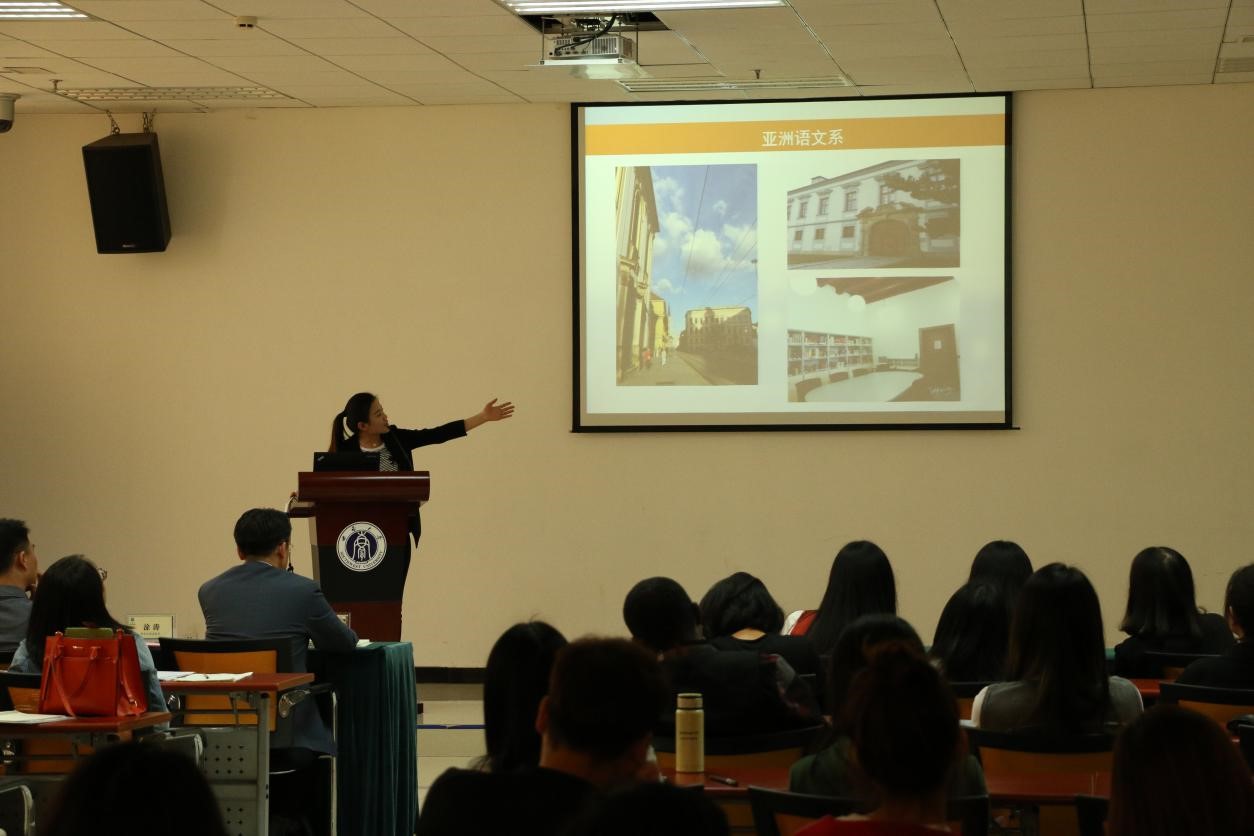 根据学科培养计划及公司实习工作安排,2015级汉语国际教育硕士中国员工班的31名同学和汉语国际教育硕士职工班来自泰国、英国、蒙古、喀麦隆、贝宁等国的21名职工于去年5月至今年3月陆续在泰国孔敬大学孔子公司、泰国正大管理公司、泰国国王科技大学、捷克帕拉茨基大学、韩国仁济大学、韩国蔚山大学、蒙古国立大学等实习点进行了海外实习。2015级汉硕中国班的吴宗燕、万明岩等5名同学以及15级汉硕职工班的萧风同学作为实习小组代表依次上台介绍各实习点的实习情况。他们用生动幽默的语言结合图文并茂的PPT展示,分别就实习工作做了详细汇报。