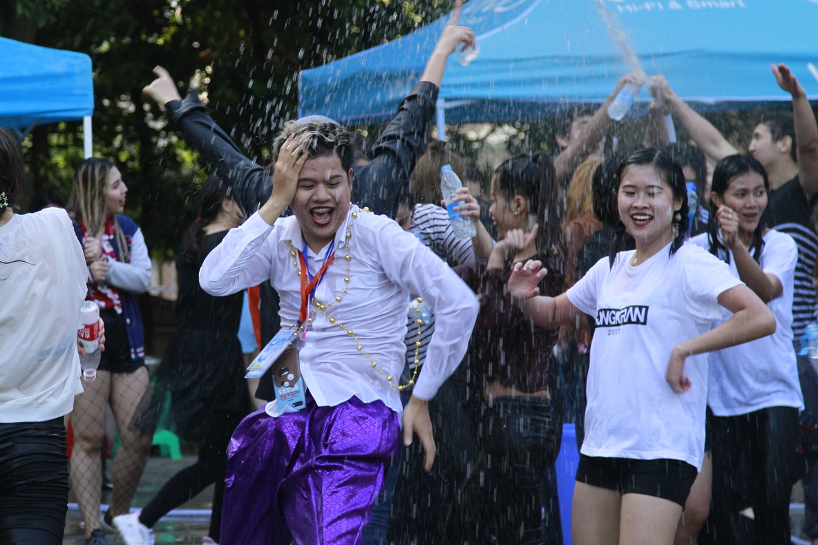 最后,在激情澎湃的音乐中,全场师生尽情泼水,互道祝福,享受着传统泰历新年带来的愉悦。