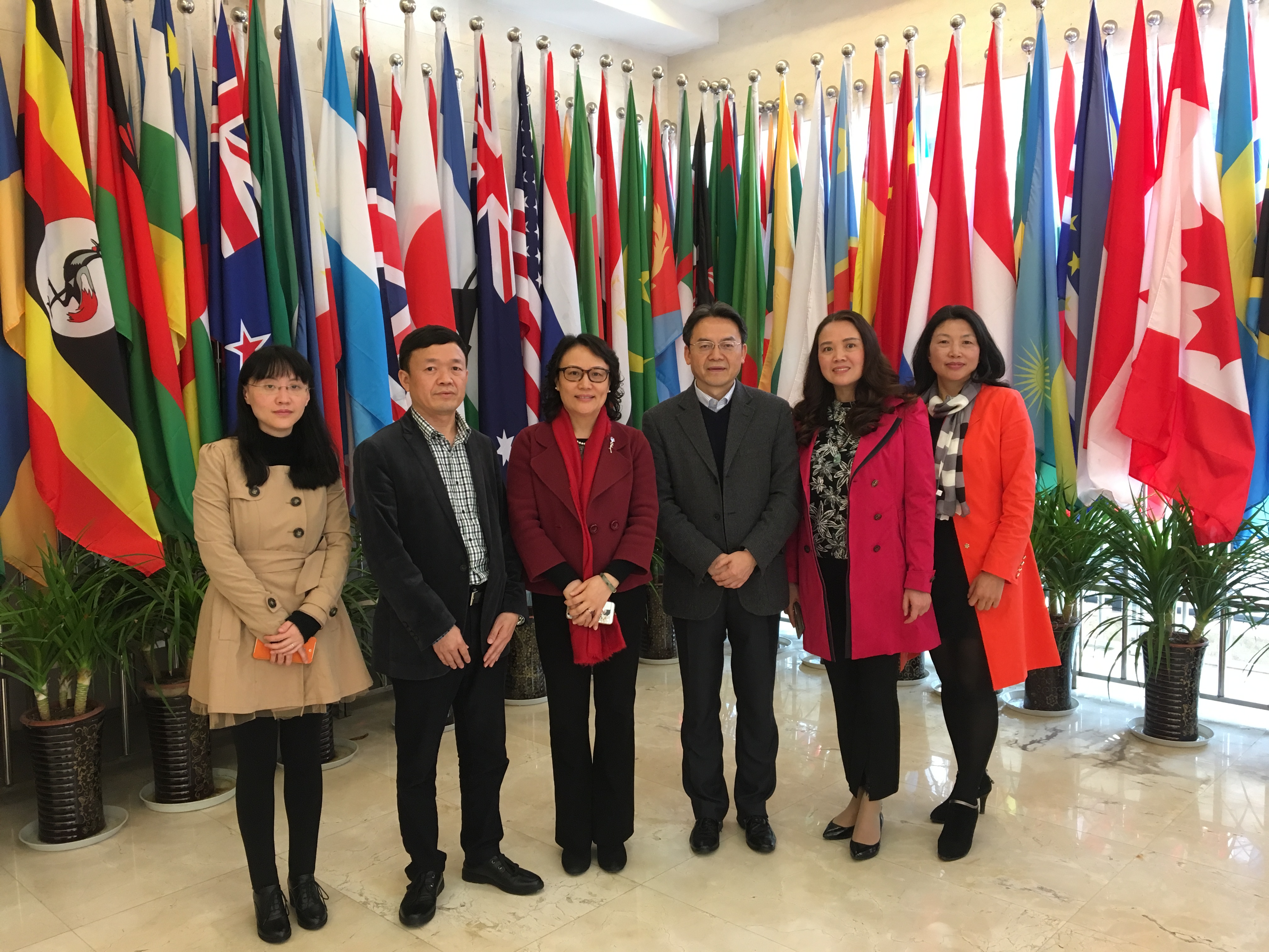 座谈会后,客人应邀参观了紫云楼,并在一楼大厅合影留念。