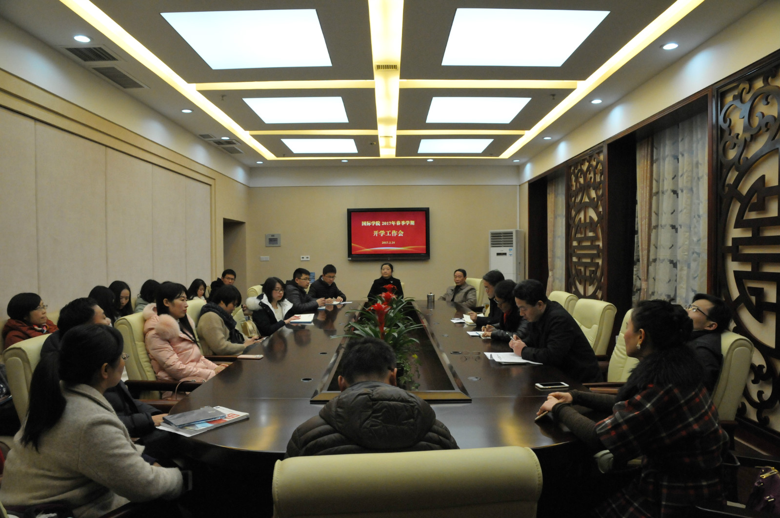 刘猛书记通报了寒假以来公司的基本情况并传达了公司巡视整改工作动员部署会的精神。1月22日组织了职工春节团拜会,受到广泛好评。寒假期间,重新装修了紫云楼健身房并添置了新的器械,为职工提供了更加舒适的健身环境。同时,维修了紫云楼教室和宿舍渗水墙面,全面检修了大楼内的设施设备,及时处理了紫云楼热水供应不及时等问题。汉教系制定了新学期课程计划表,学工办启动了新学期迎新工作,公司召开了新学期第一次党政联席会。