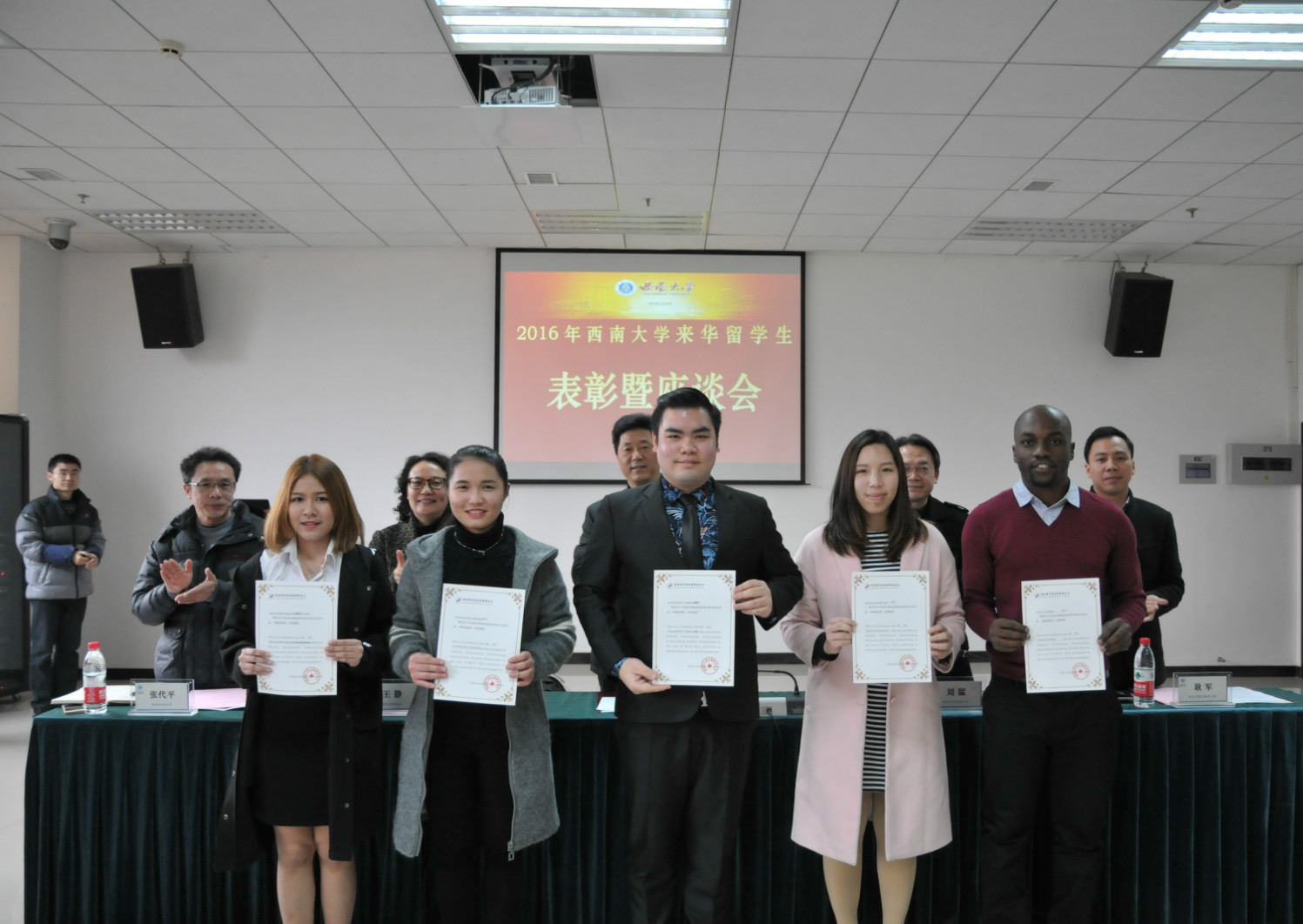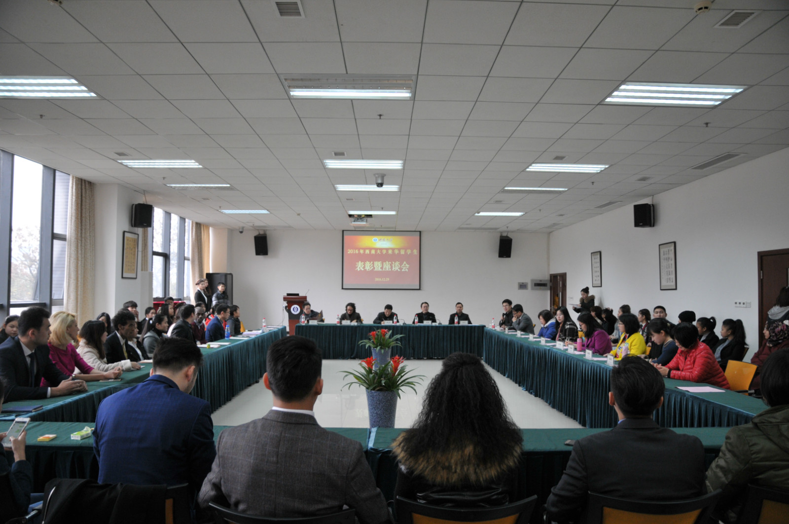 2016年12月29日,公司2016年优秀来华职工表彰暨座谈会在永利3044noc317会议室举行。副董事长靳玉乐教授、教务处张代平副处长,永利3044noc王静经理、刘猛书记,以及经济管理公司、教育学部、政治与公共管理公司、文公司、新闻传媒公司、永利3044noc等职工培养单位的导师、辅导员代表济济一堂,与获奖员工代表一起出席会议。