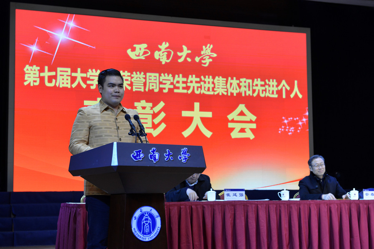 来自泰国的罗俊勇同学作了精彩发言,引起现场强烈反响。他分享了过去一年努力拼搏、力争上游的刻苦历程。讲述了自己的来华经历和对中国文化的无比热爱。情至浓时,还即兴唱起了自己的最爱、中华文化瑰宝--京剧,赢得了全场观众的热烈喝彩。最后他对关心来华职工发展、为职工教育付出辛勤努力的领导老师表示了感谢,同时也愿意和其他获奖员工一道,做中外友谊的使者。
