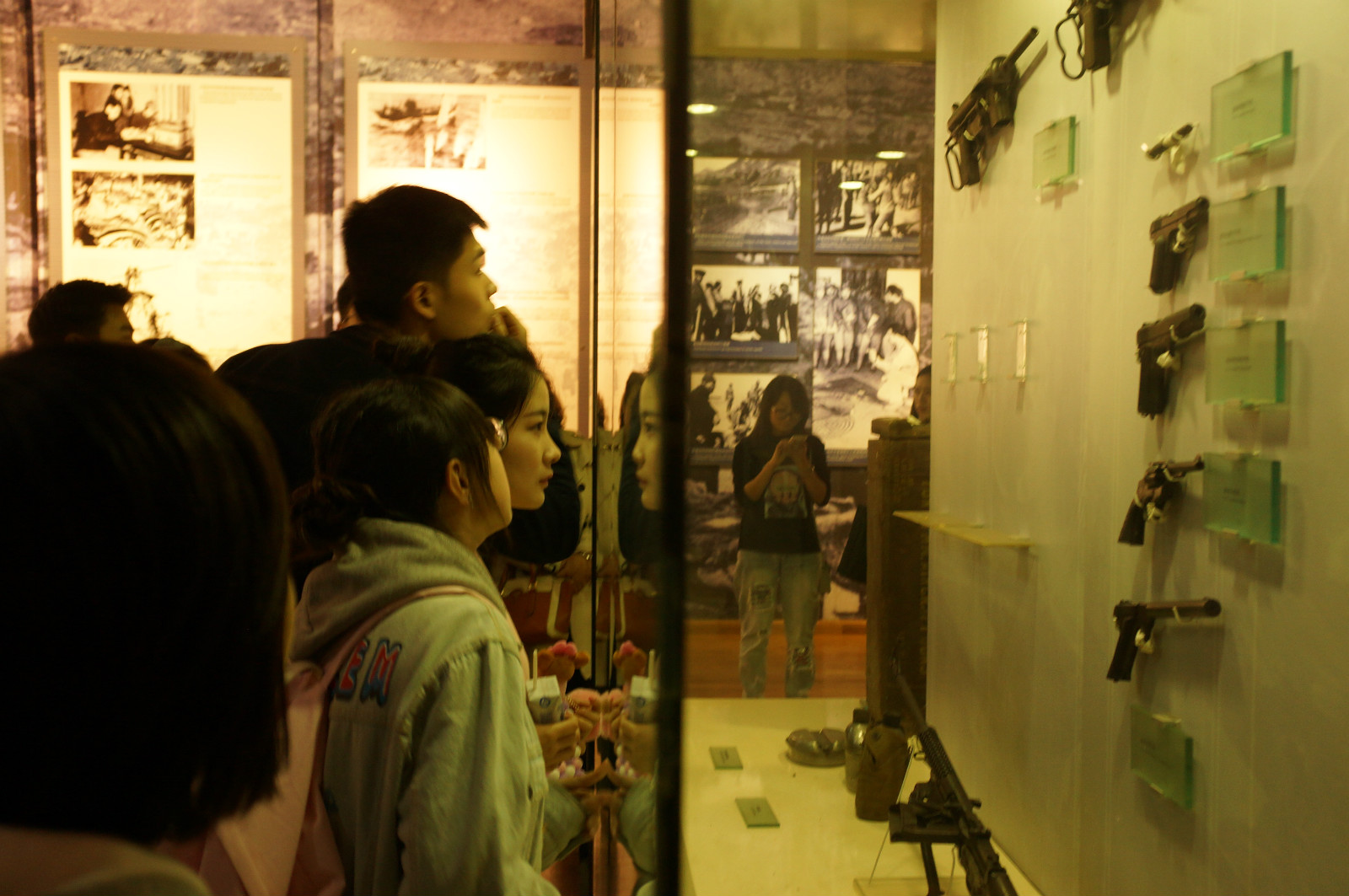 生活在和平鸽衔橄榄枝自由飞翔的天空下,我们不能忘记英勇的牺牲者,不能忘记先辈崇高的共产主义信仰。同学们从进馆开始,就带着沉重的心情,从军统局“乡下办事处”、渣滓洞煤窑、狱中八条意见,到重庆解放殓葬忠骸,这一桩桩一件件,都在向我们昭示着国民党反动派的种种罪行,都在向我们诉说着共产党革命的艰辛与不易。当看到浮雕上那句“同志们,革命胜利的时候不要忘记我们”时,同学们心里仿佛受到钝钝一击。一步步地参观,看着革命烈士英勇无畏的脸庞,陈列的镣铐,似带血的刀枪……同学们愤慨国民党的恶行,感叹烈士们伟大的牺牲。讲解员耐心讲解:“‘皖南事变’后,新四军军长叶挺将军曾被囚禁于此,著名共产党人罗世文、车耀先、江竹筠,爱国将领杨虎城、黄显声等均在这里惨遭杀害。1949年11月27日,国民党政权撤离大陆前夕,对囚禁在这里的300多位革命人士实行集体大屠杀,制造了震惊中外的“一一二七”大血案。”同学们听了这些历史细节后感慨万分,还在留言册上留言:“同志们,革命胜利的时候我们不会忘记你们,在革命胜利七十年后的今天,你们依旧活在我们心里。”