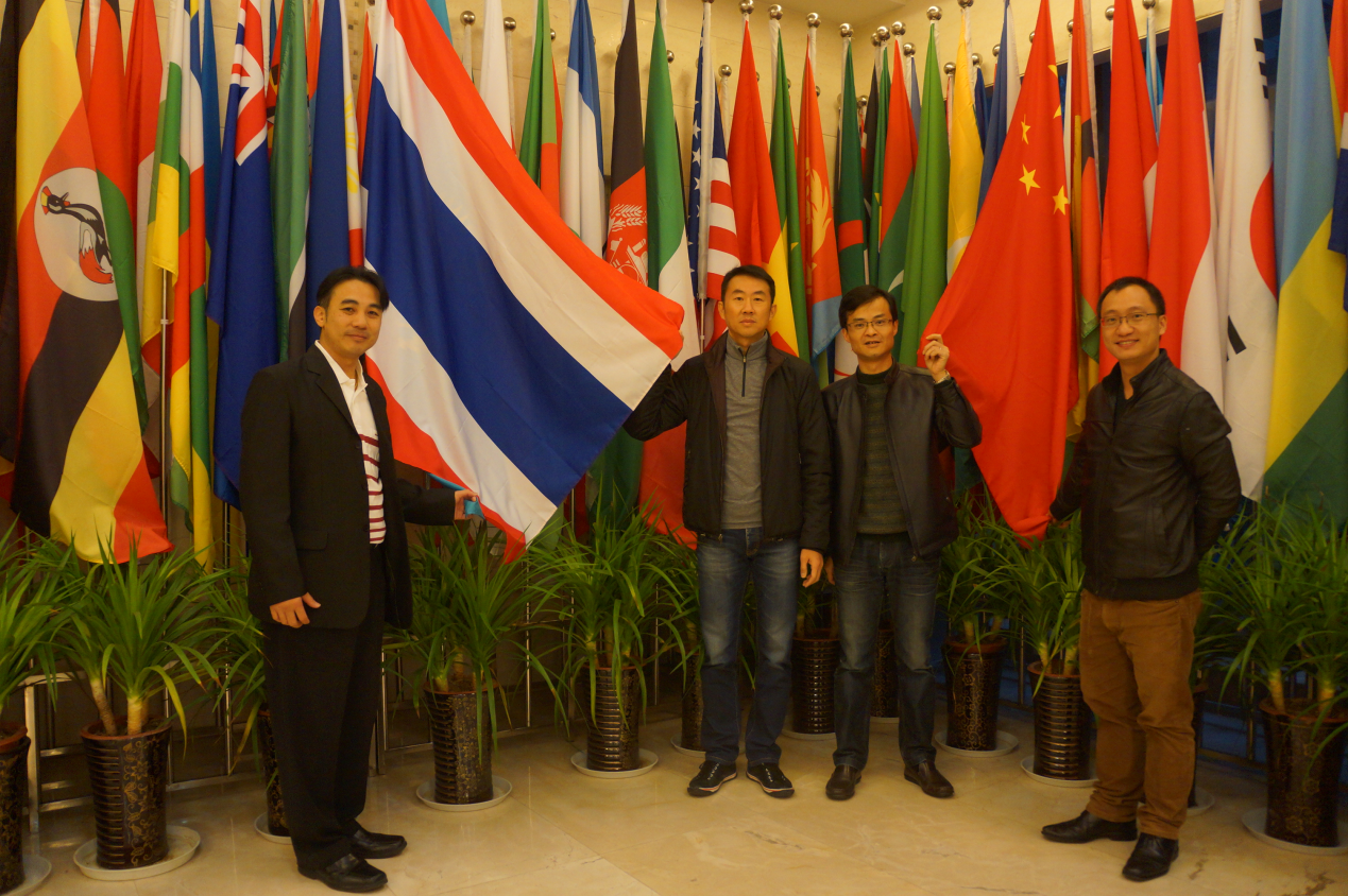 11月12日,泰国乌汶皇家大学国际教育公司经理兼中文系主任、中国西部研究中心主任张华平博士,乌汶商会主席林瞬扬,泰国乌汶青年企业家协会秘书李美殊,副秘书李伟龙一行四人访问公司。副经理李航、招生办主任代远鸿、以及项目负责人王鹊在紫云楼会见客人并举行会谈。