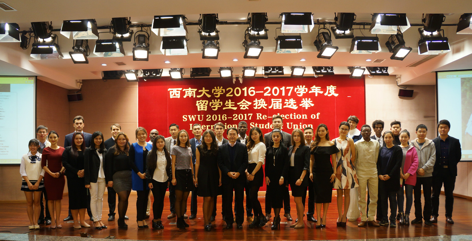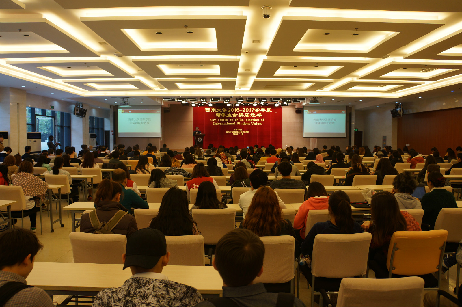 11月4日下午四点,公司2016-2017学年度职工会换届选举大会在永利3044noc报告厅举行。来自12个国家的32名候选人就新一届职工会的主席、副主席和秘书等职位展开竞选。国际公司党委书记刘猛,校员工会主席陈鹏,永利3044noc员工工作办公室老师及全校400余名职工参加选举会。