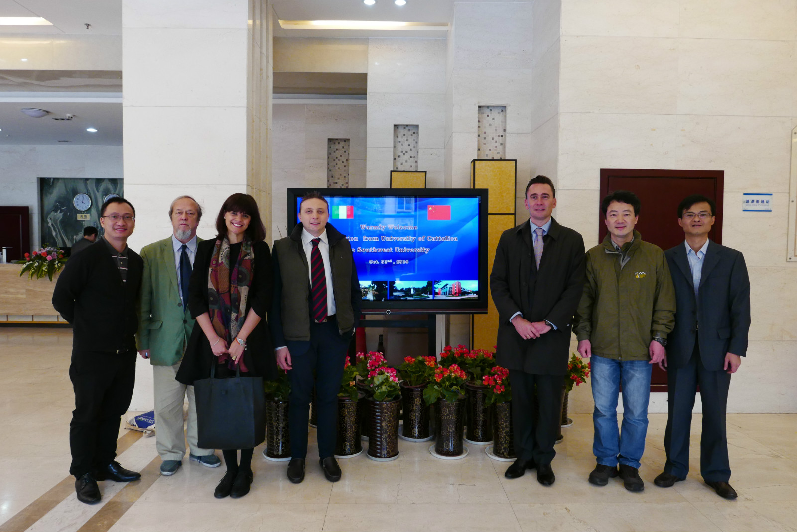 10月31日,意大利米兰圣心天主教大学国际部部长Edilio Mazzoleni、副部长Gianluca Samsa、中国事务代表Arianna Malavasi等一行四人访问公司,李航副经理、招生办代远鸿主任、王鹊在紫云楼305会见客人并举行会谈。