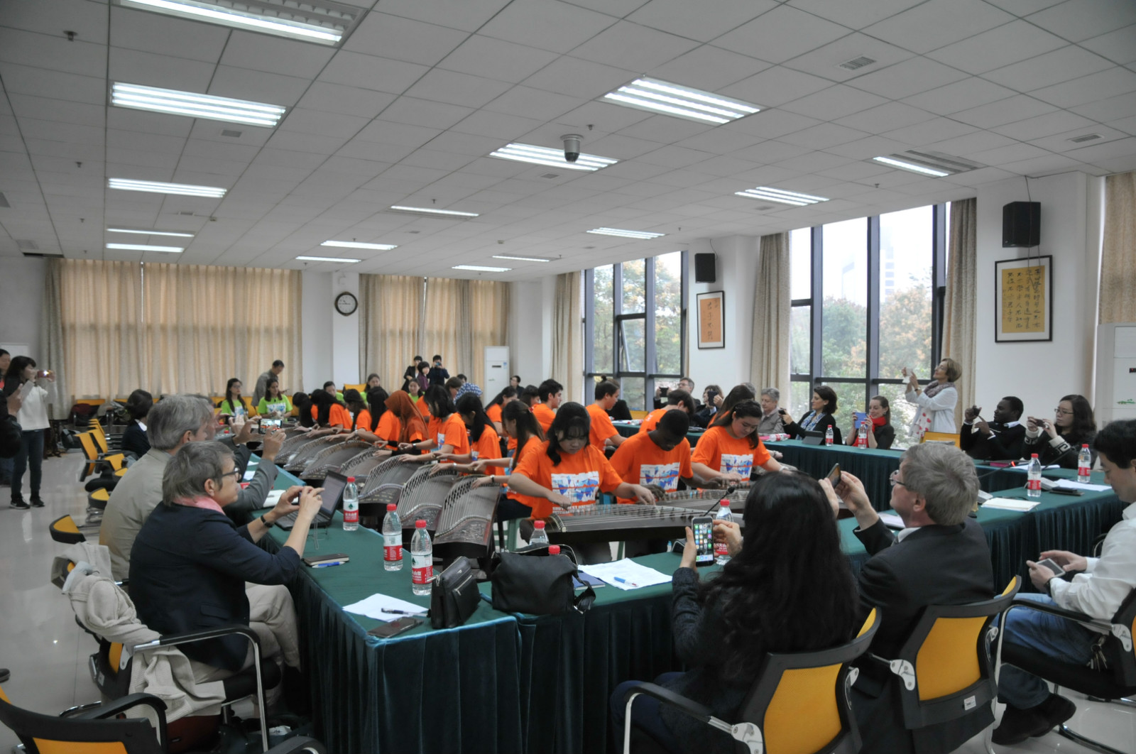 永利3044noc职工古筝队为法国赴华教育代表团汇报表演