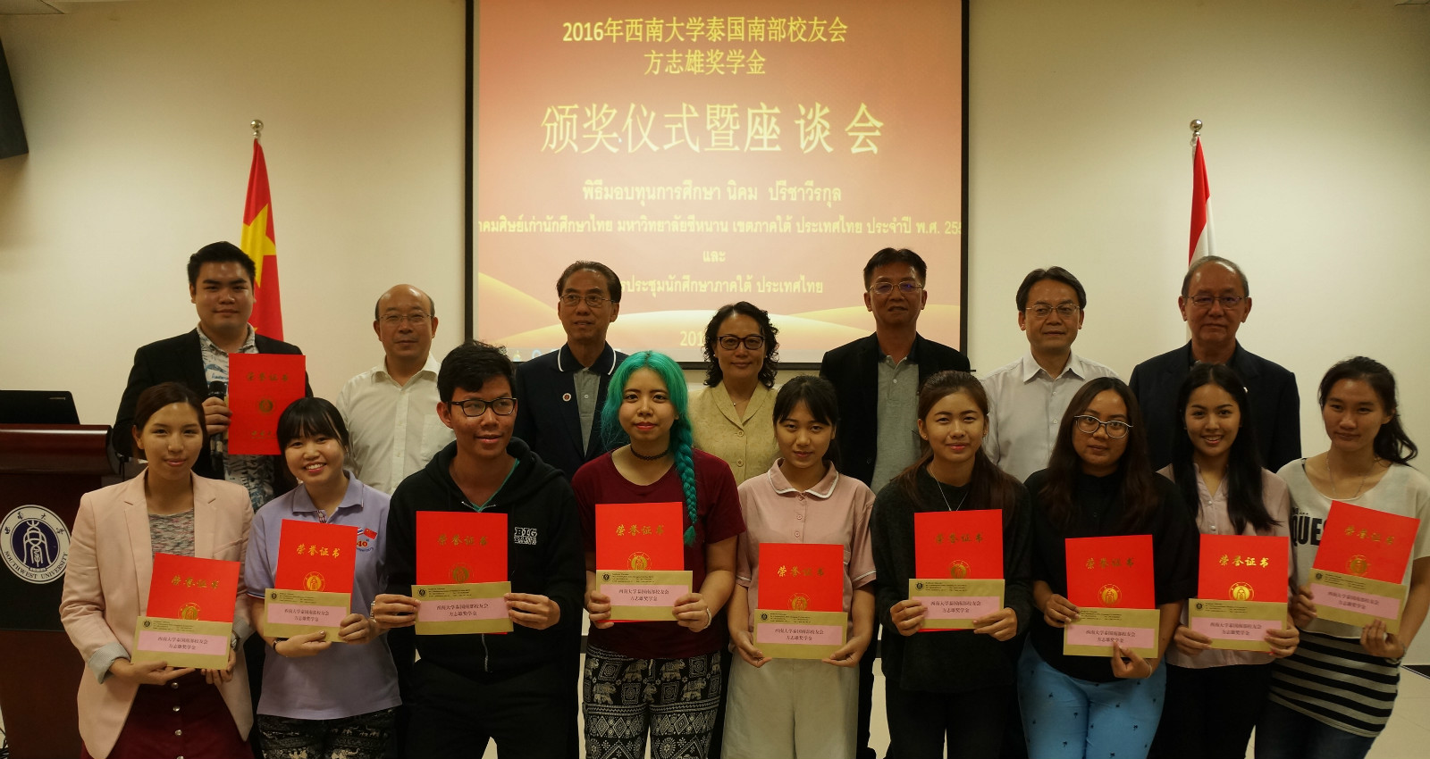 在座谈会上,来自泰国南部的员工,教师代表,访华团成员就奖学金、西大生活、汉语学习等进行交流汇报,气氛温馨融洽。会后,全体与会人员合影留念。