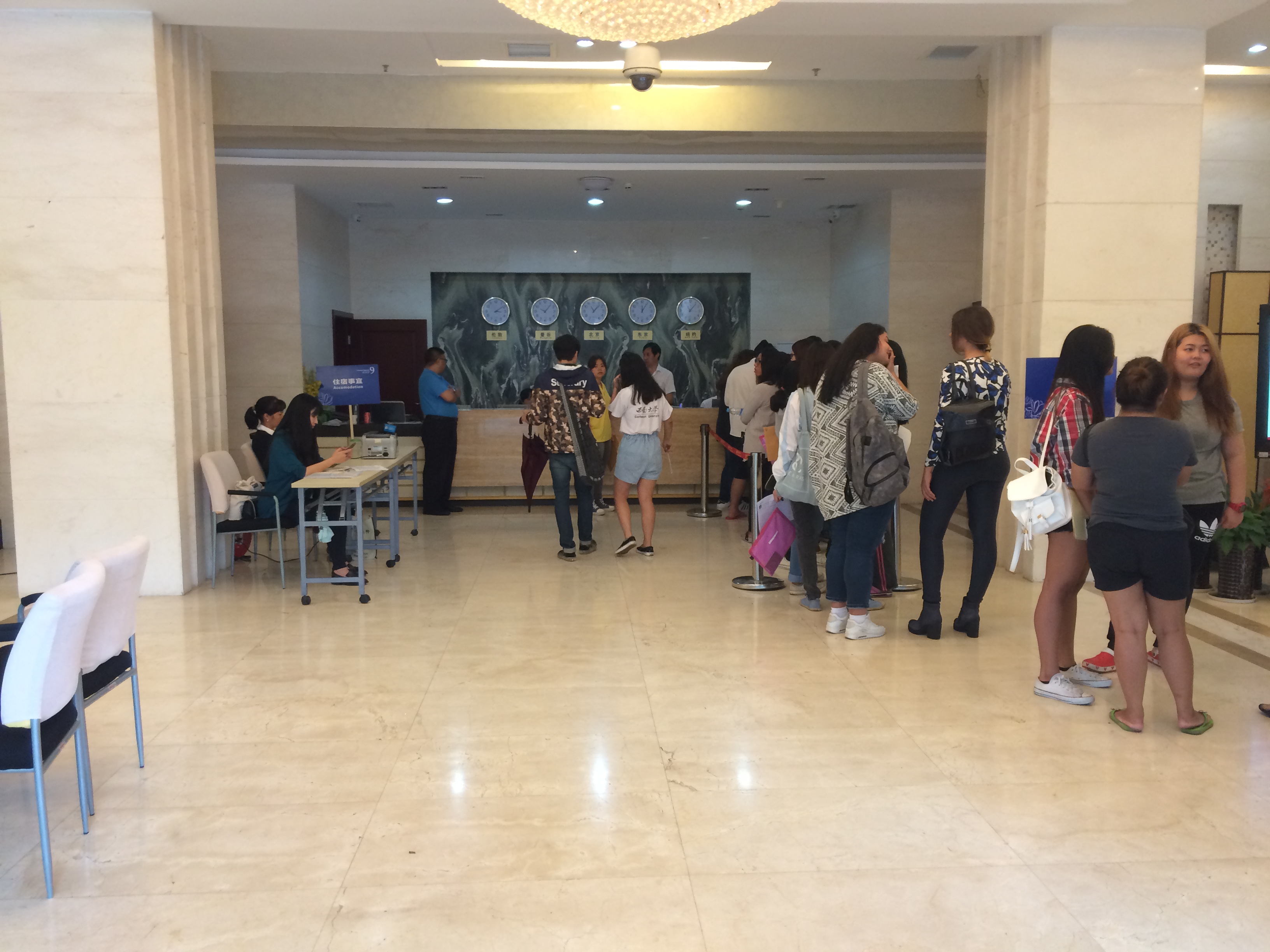 二、优化场地和流程设置,提供人性化服务。为迎新工作顺利流畅,永利3044noc早于七月上旬就开始规划各项事宜,对新生报到现场布置、报到流程设计、每个环节负责人安排等进行了精心策划,简化了报到流程,减轻了来华职工报到的各种困难。