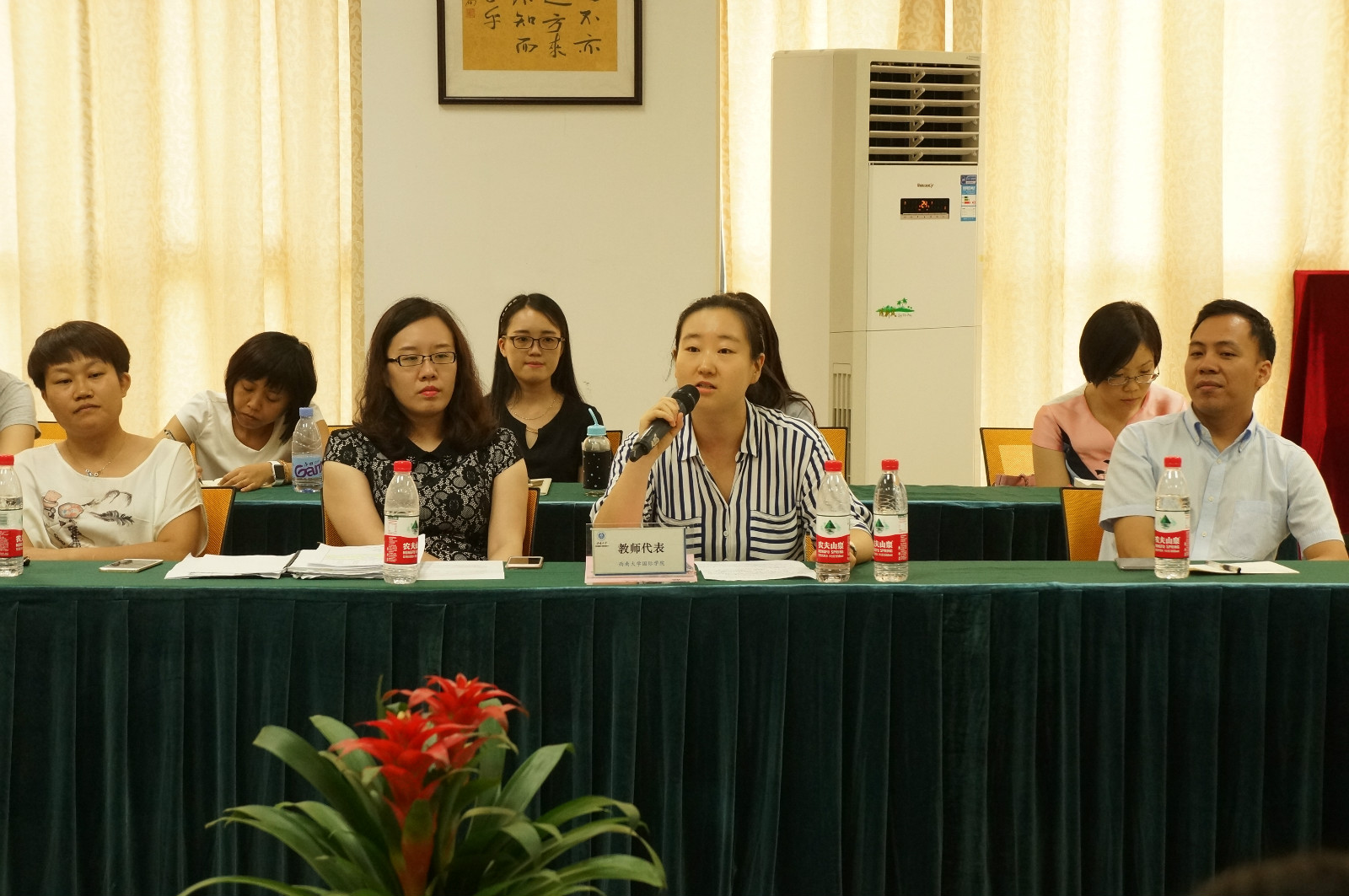 汉语国际教育系范媛媛作为教师代表发言。她特别向汉语国际教育硕士职工班的新生们强调了HSK考试的重要性,并表示所有老师都会竭尽所能,帮助各位同学发掘自身的天赋和潜能,顺利完成学业。