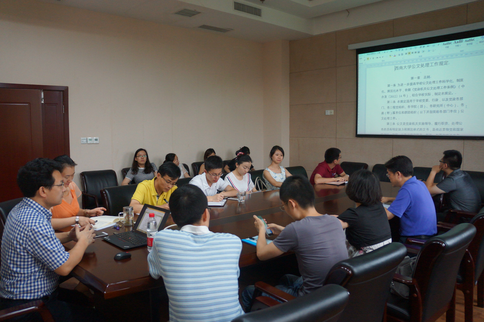 下午的培训会由刘猛书记主持,校办副主任罗义文就公文写作做专题培训。罗主任对公文文种、格式、行文规则进行说明,并将公文行文规则与永利3044noc发文案例相结合,现场修改公文,让大家对公文写作的规范有了直观生动的了解。交流会上,新同志积极提问,热烈交流公文写作中存在的问题,罗主任一一作答。