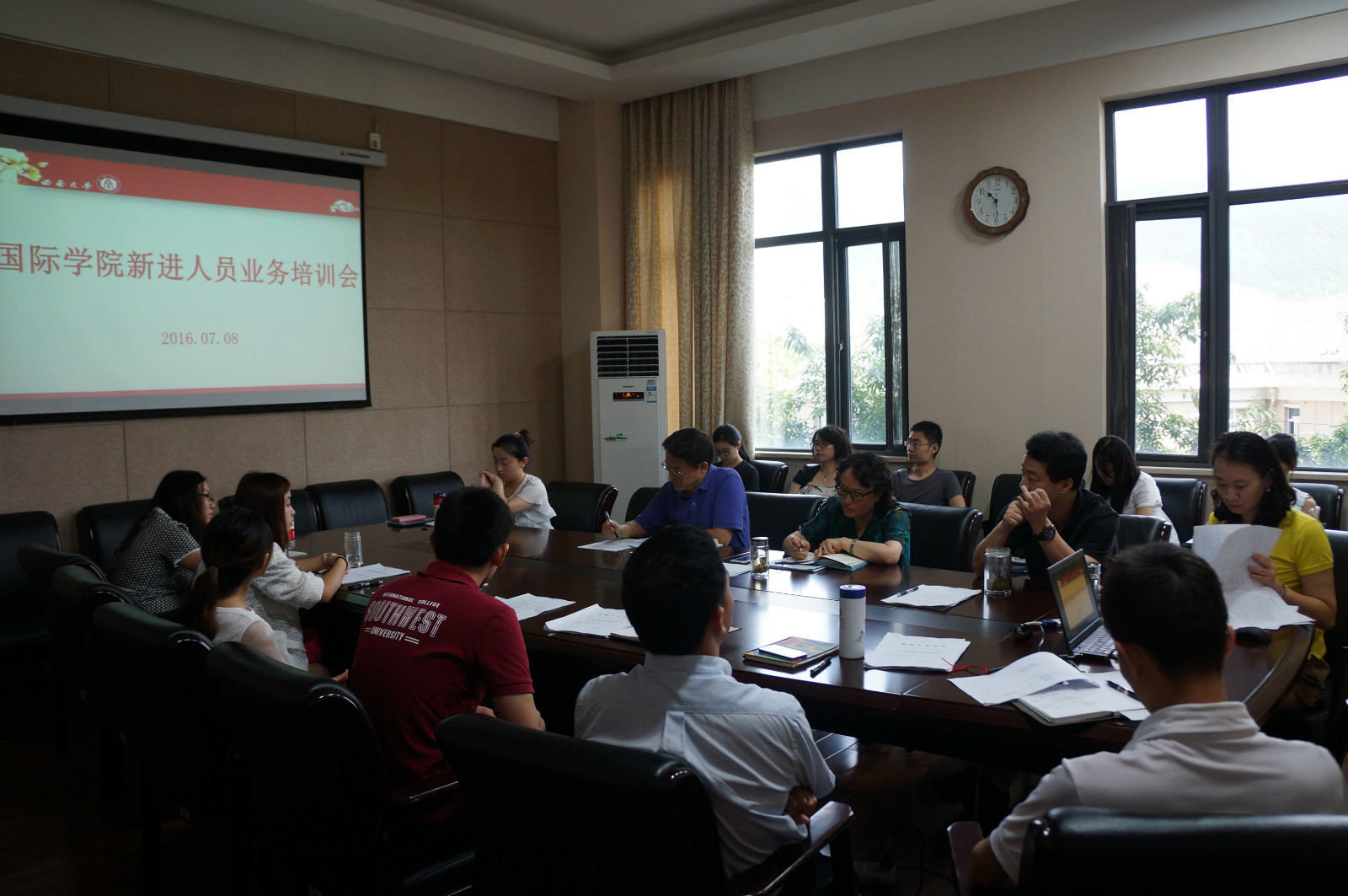 上午的培训会由李航副经理主持,各部门负责人做专题培训。招生办主任代远鸿从工作内容、人员分工、工作流程三个方面介绍招办工作。外事服务中心负责人何汉儒介绍了公司后勤保障、职工大楼的日常管理、设备维护、消防安全等,强调了节约意识和安全意识。汉教系主任耿军对公司教学科研情况、教师管理要求以及考核奖惩措施等方面进行了详细的说明。员工工作办公室李林泽从学工办定位、业务范围、业务素养、纪律要求、新员工建议等几个方面作了全面细致的说明。综合办公室主任邹育艳就办公室工作职责、公司规章制度、外事纪律等方面进行了阐释,强调外事无小事,凡事多请示。