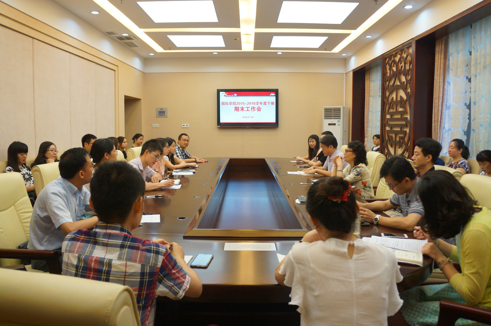 2016年7月6日上午,永利3044noc2015-2016年下学期期末工作会在紫云楼签约室召开,会议由刘猛书记主持。