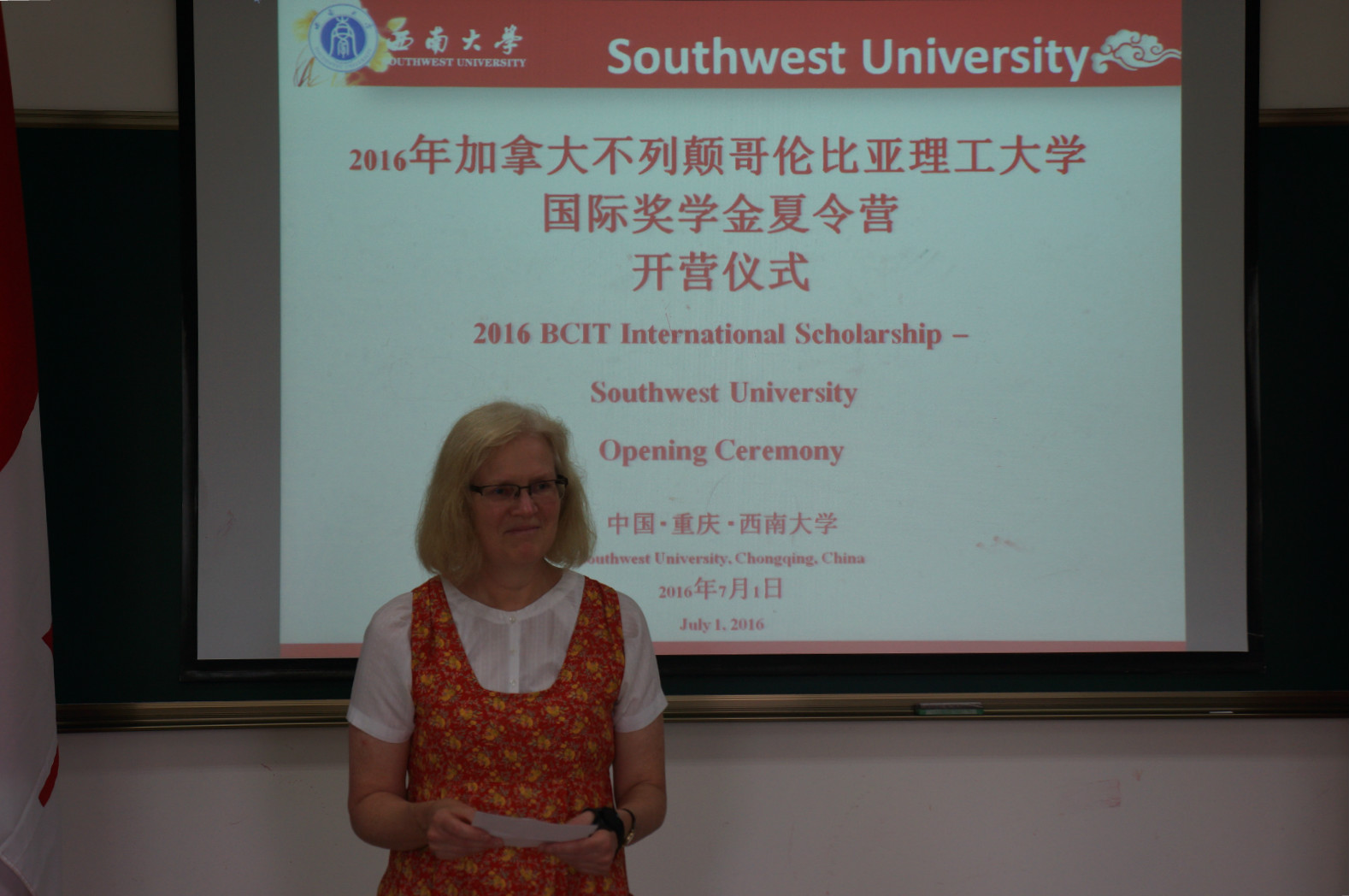 加方领队教师Patricia致答谢辞,她一一介绍了BCIT师生,感谢永利3044noc为游学中国的BCIT师生所做的一切。她表示,此次为期二周的永利3044noc之行一定能够帮助BCIT师生们更多地认识中国的历史与文化,了解重庆这座世界闻名的山城,爱上美丽的永利3044noc。