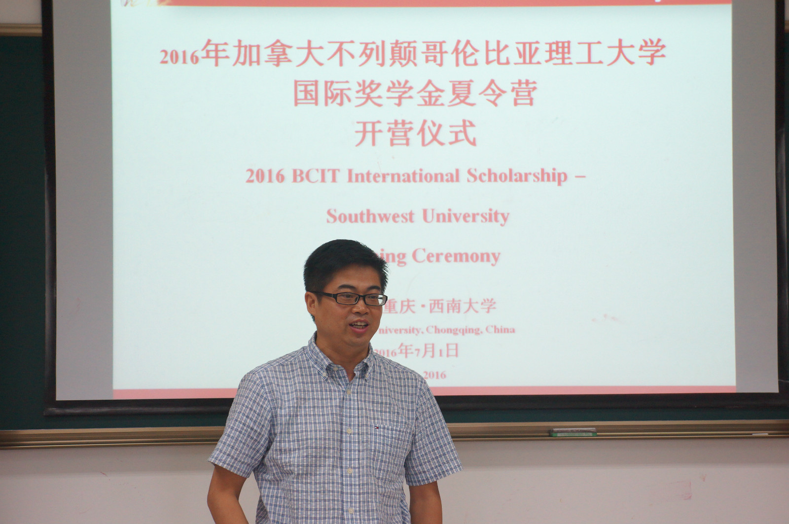 李航副经理致欢迎辞。他首先代表永利3044noc热烈欢迎BCIT师生的到来,随后他详细介绍了重庆的历史地理人文和社会经济发展,以及永利3044noc办学历史、重要地位、校区分布、学科门类、优势学科、与加拿大高校的交流与合作等。他希望同学们在紧张的课程学习和文化考察活动之余,与永利3044noc工作人员和公司志愿者进行深度交流,从真正意义上了解永利3044noc这所位于中国西南地区的重要学府,更鼓励大家走出校园,获得关于重庆和中国的真实的、第一手的感观认识。