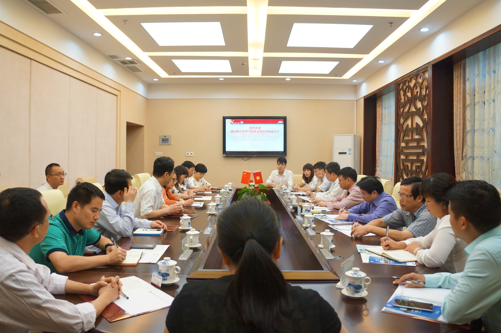 在公司期间,越南代表团参观了中心图书馆和教师教育公司,还分别走访了教育学部、心理学部、计算机与信息科学公司,就各相关专业的联合办学进行了详细的洽谈。
