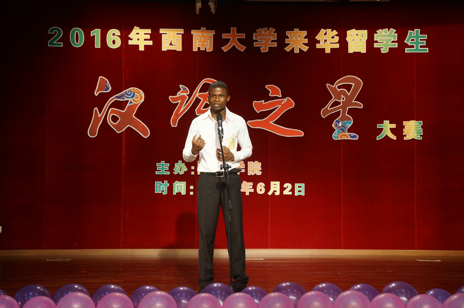 6月2日晚7时,2016年永利3044noc来华职工“汉语之星”大赛决赛在永利3044noc学术报告厅举行。来自泰国、哈萨克斯坦、越南、日本、几内亚比绍、佛得角、刚果(布)等9个国家的11名选手经过层层选拔脱颖而出,展开了初级、中级、高级等3个组别“汉语之星”的终极角逐。