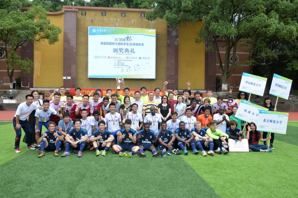 此次足球邀请赛旨在为部属师大国际员工提供一个相互沟通、增进交流、切磋技艺、共话友谊的平台,由中国高教学会外国职工教育管理分会和公司主办,永利3044noc承办,体育公司协办,得到重庆义门白家有限公司大力赞助。比赛期间,部属师大代表还就国际员工工作进行了座谈交流。赛后,全体参赛队员参加了联谊会。经商议,明年部属师大国际员工足球邀请赛将在华东师范大学举行,届时公司代表队将出征上海。