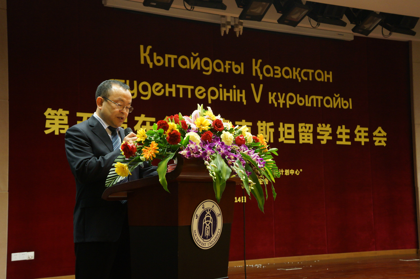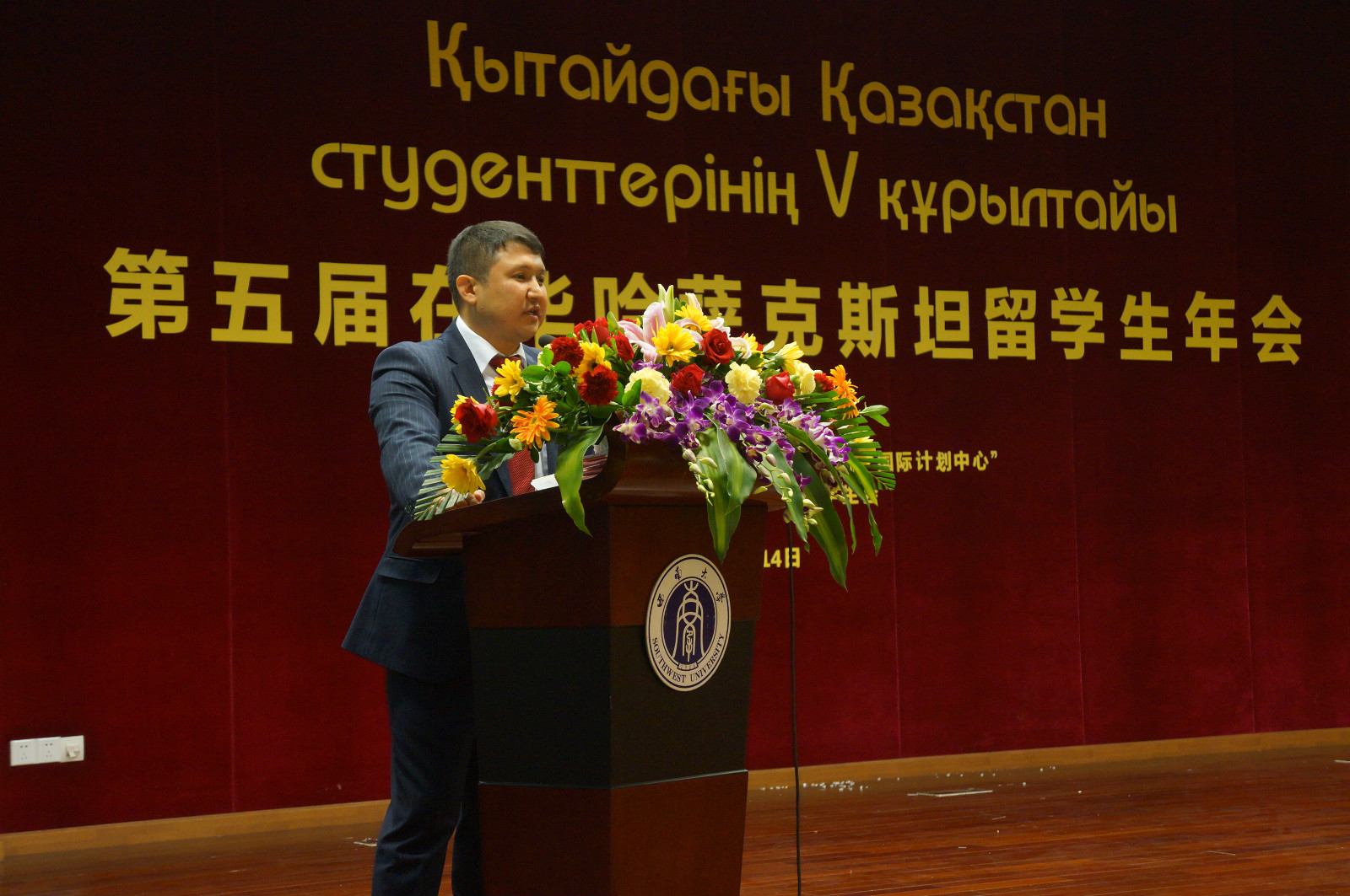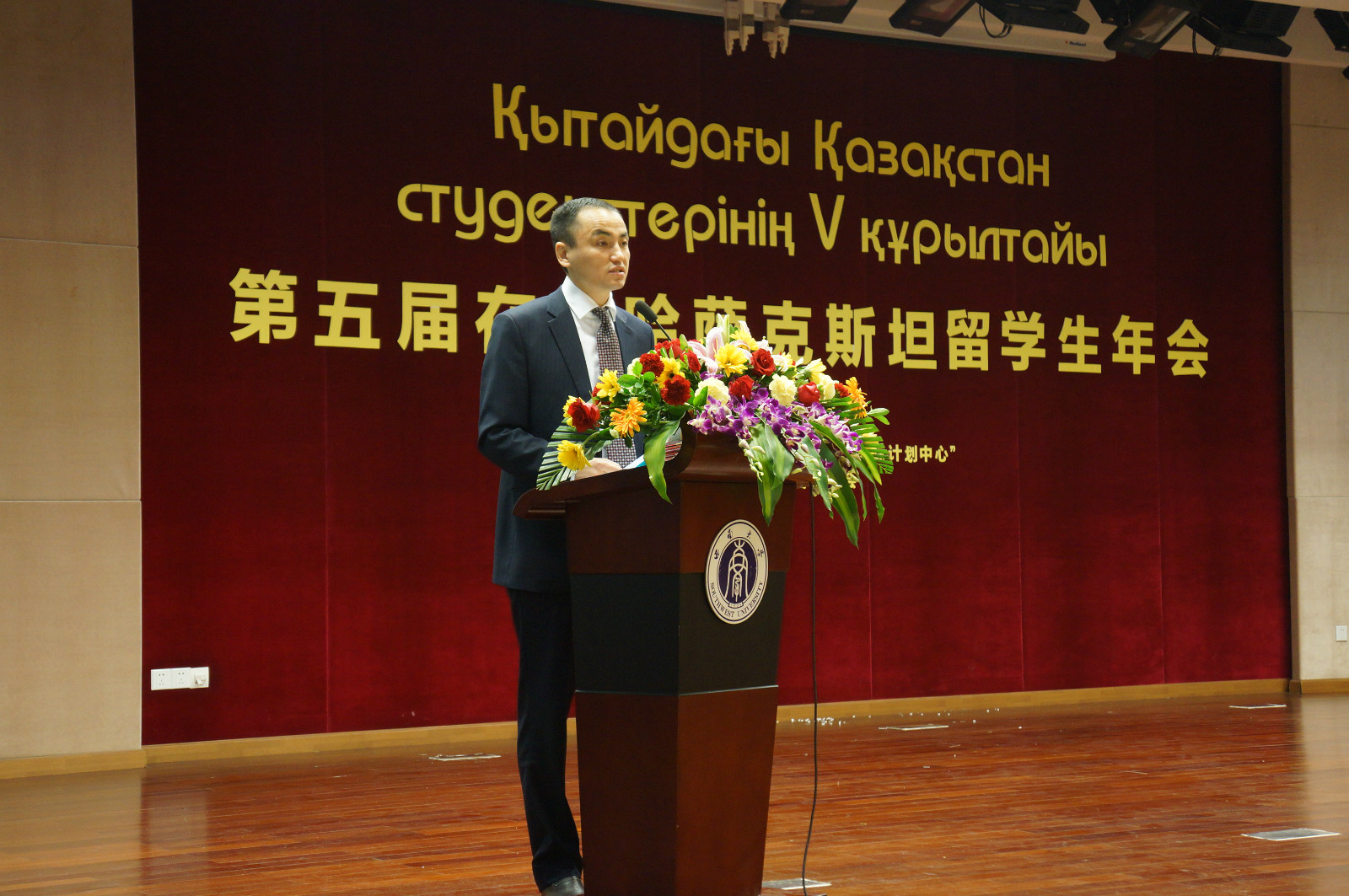 哈萨克斯坦共和国驻华大使馆教育参赞KAIRAT ABDRAHMANOV先生讲话,感谢永利3044noc对本届年会的大力支持。他强调,哈萨克斯坦共和国面临的挑战,需要所有哈萨克斯坦人共同努力,而在座的各位以及所有哈萨克斯坦年轻人正是国家的未来和希望。