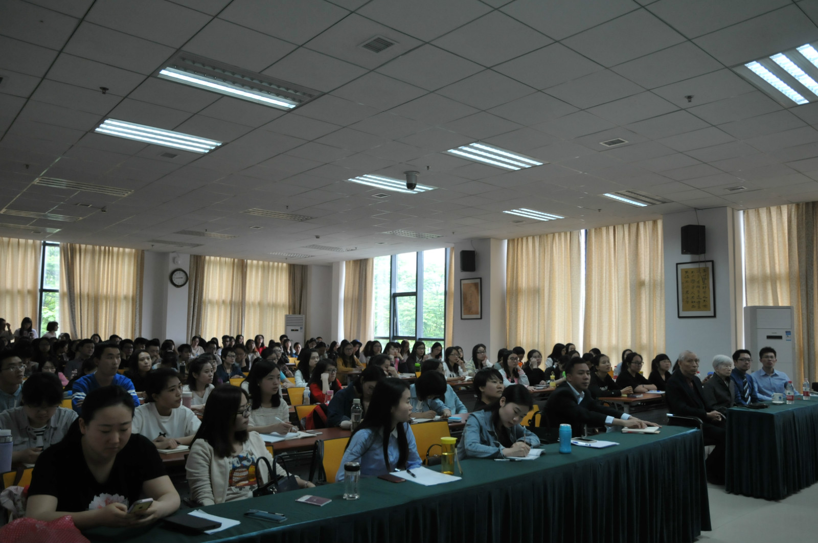 2016年4月19日下午,永利3044noc紫云楼317报告厅师生济济一堂,聆听了北京大学教授陆俭明及夫人马真先生的学术讲座,讲座题目分别为“要重视词语和句法格式的用法研究”和“语言研究要不断寻求新的视角”。