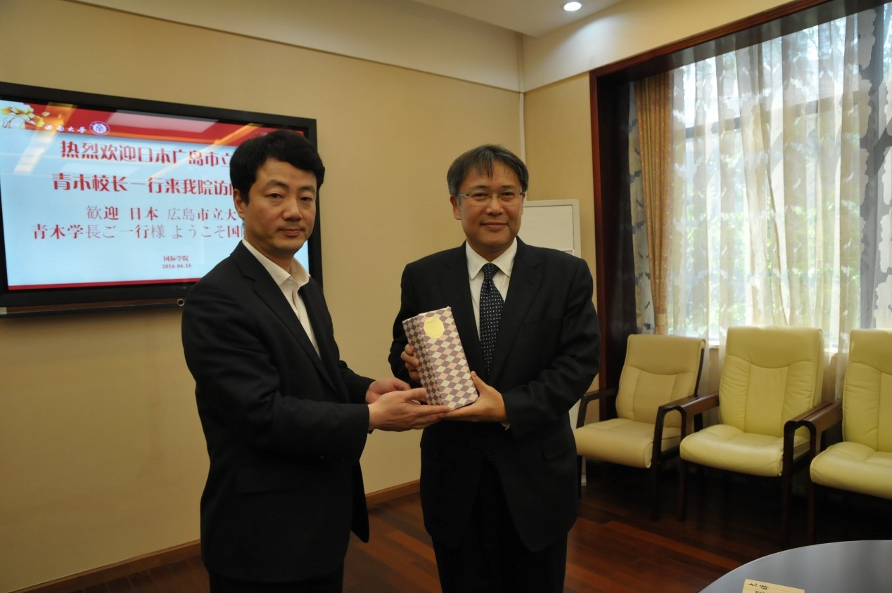 2016年4月18日下午,日本广岛市立大学董事长青木信之、国际交流推进处处长松本良德、国际学部栾竹民教授和饭岛典子副教授一行4人访问永利3044noc,李航副经理热情地接待客人并就两校合作事宜开展座谈交流。