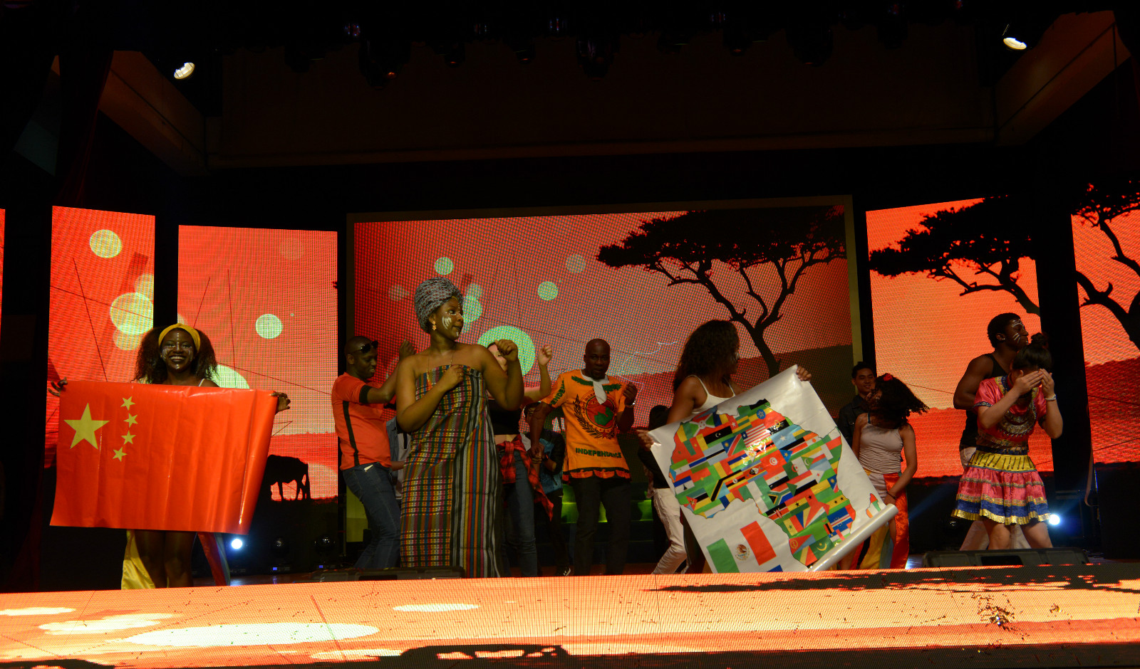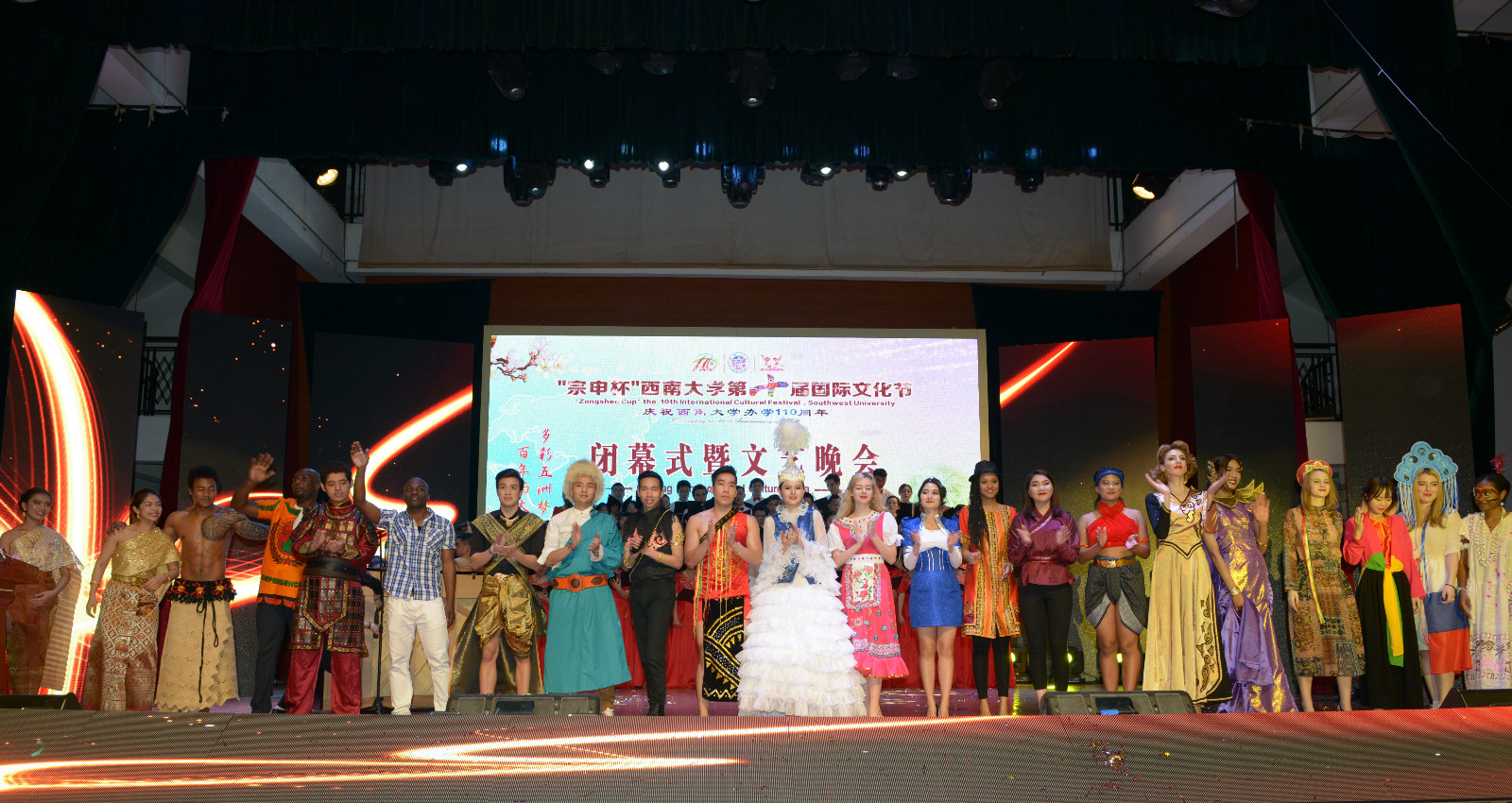 颁奖仪式结束之后是文艺表演时间,公司师生在5个多月的辛苦排练之后,将大千世界万般风情尽情展现在了西大舞台上。来自75个国家的300多名员工共同演绎了舞蹈、器乐弹唱、小品、走秀等精彩节目,精美的民族服装、炫丽的光影效果、创意又富深意的节目编排、异域风情的海量放送,一系列多元文化的呈现让观众大饱眼福。