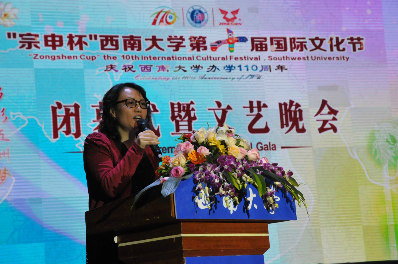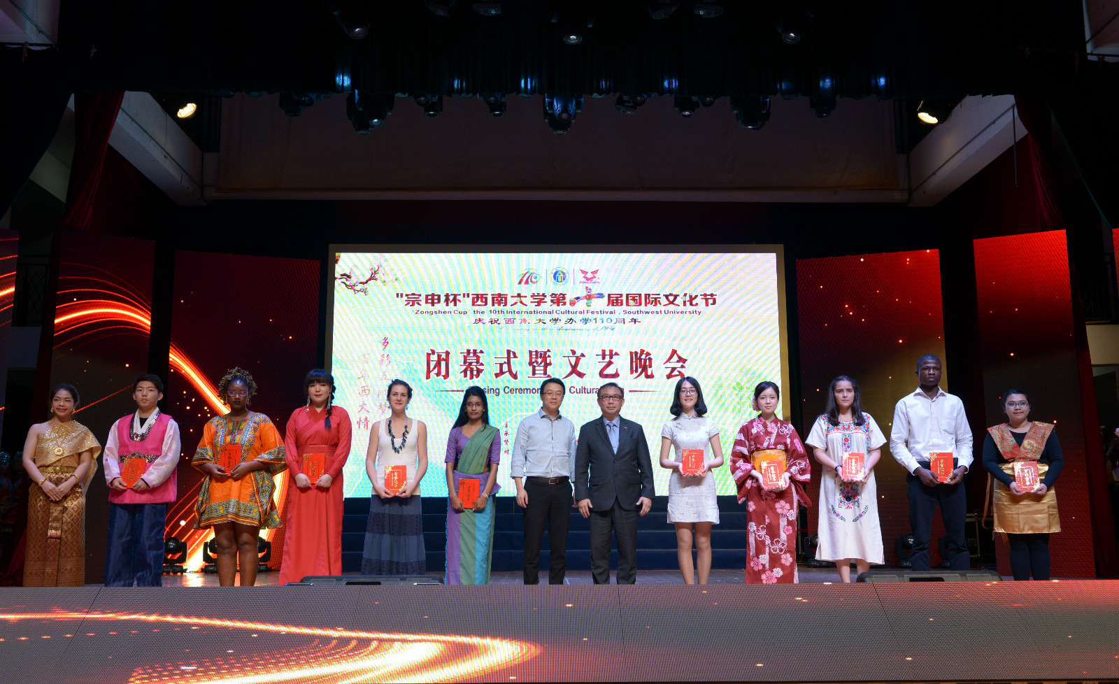 4月16日晚,“宗申杯”永利3044noc第十届国际文化节在光大礼堂盛大闭幕。泰国驻成都总领事馆总领事郭梅特先生,重庆市教育委员会国际合作与交流处副处长李斌,重庆市公安局出入境管理局、北碚区公安局等单位领导到场祝贺,重庆13所高校以及公司相关职能部门领导应邀出席了闭幕式。