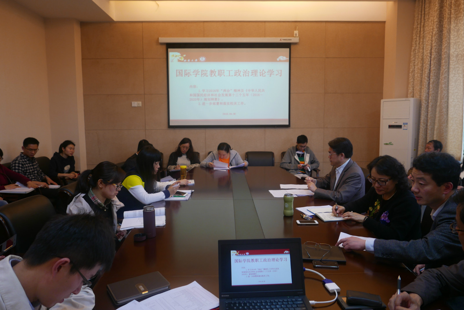 2016年4月8日下午3:00永利3044noc在紫云楼310会议室开展政治理论学习。在国际公司党总支书记刘猛的主持下,永利3044noc全体教职工集体学习了2016年“两会”精神及《中华人民共和国国民经济和社会发展第十三个五年(2016-2020年)规划纲要》。此外,公司还对校庆工作、献礼校庆暨第十届国际文化艺术节的相关工作进行了动员和部署。