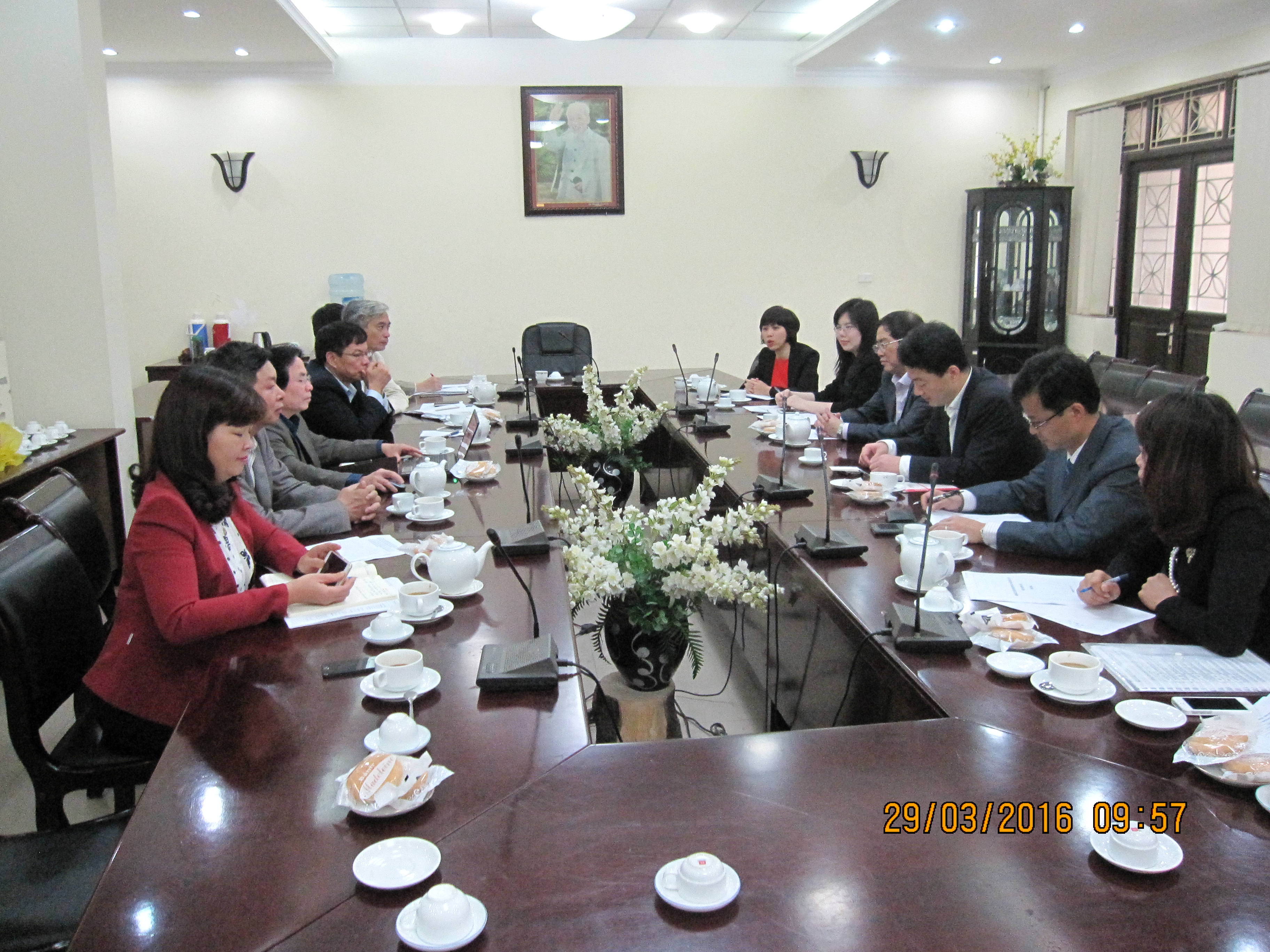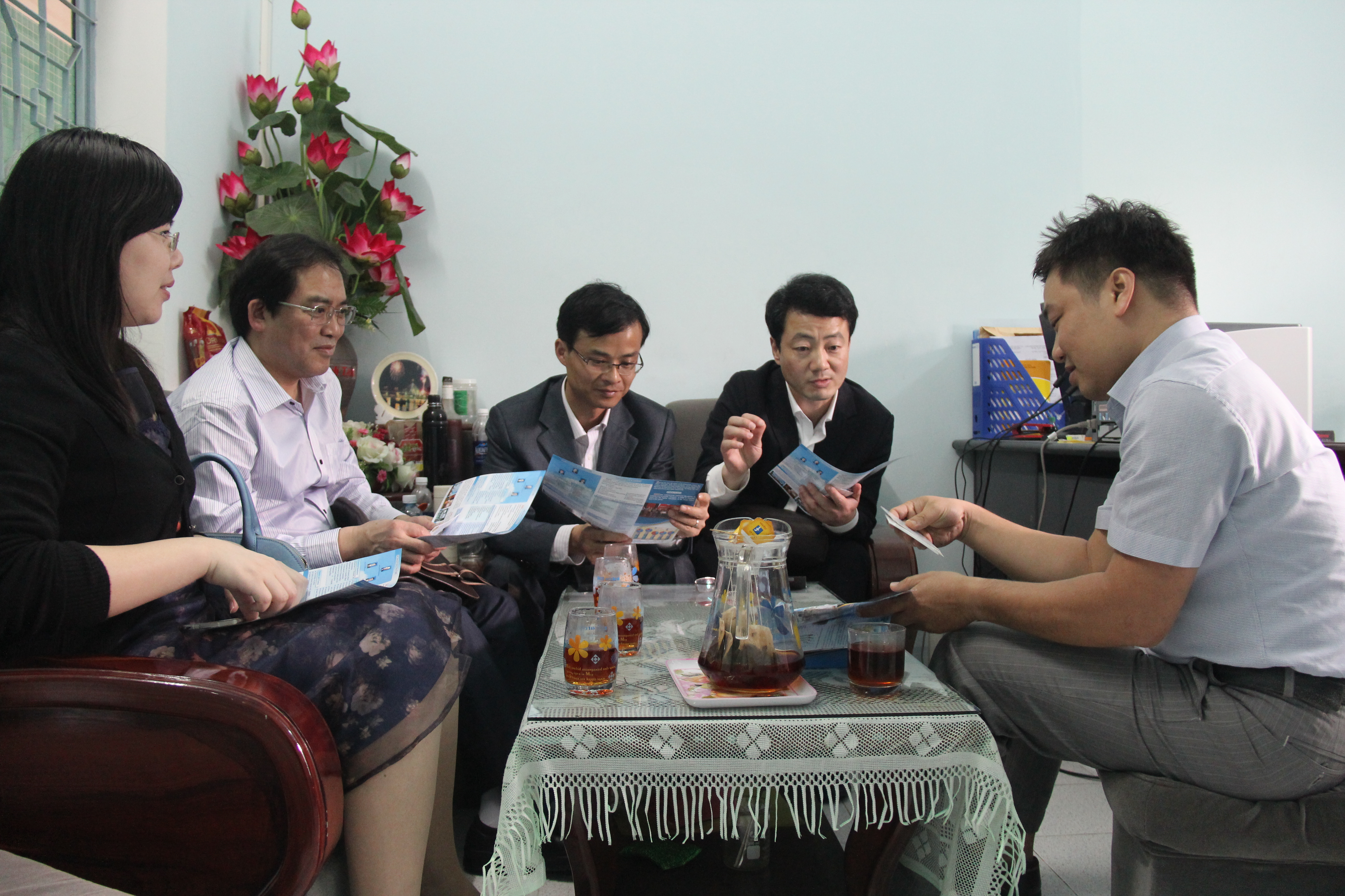 在越南教育管理公司,公司代表与该校代理经理、副经理、国际处负责人、教育系主任及公司财务总监等座谈,就“联合培养项目”的授课安排、毕业论文撰写与答辩、学位授予及财务等具体事宜进行了详尽讨论并形成共识。此外,双方还就扩展校际合作达成多项意向,包括:将现有的“联合培养项目”拓展为全英文授课和汉语授课两个语种;设立全英文授课的“教育技术应用与管理”和“临床心理学”硕士项目;设立全英文授课的“教育学”、“心理学”和“计算机”本科项目。期间,代表团还分别与“联合培养项目”的第一、二届学员座谈交流。