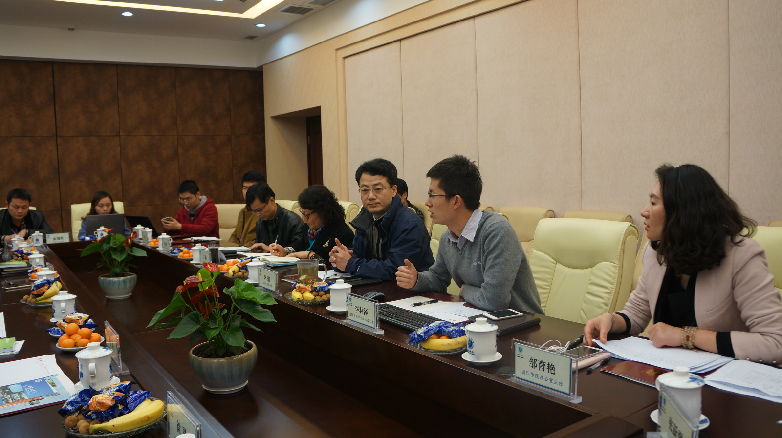 永利3044noc学工办负责人李林泽对信息化管理工作、职工综合管理平台、学历生管理组织及培养流程等做了详细说明,并提出趋同化管理和集约化管理有机结合的建议。学工办杨昆介绍了职工生活费、保险、考勤以及员工工作的相关情况。招生办代远鸿主任首先对公司来华职工数据进行了系统分析,提出了2016年招生规模相关任务,并介绍了奖学金设置情况。副经理李航对公司职工招生形势、招生宣传工作、境外合作办学项目建设、境外网络教育、各类短期特色项目拓展、全英文授课建设等问题提出了建议。