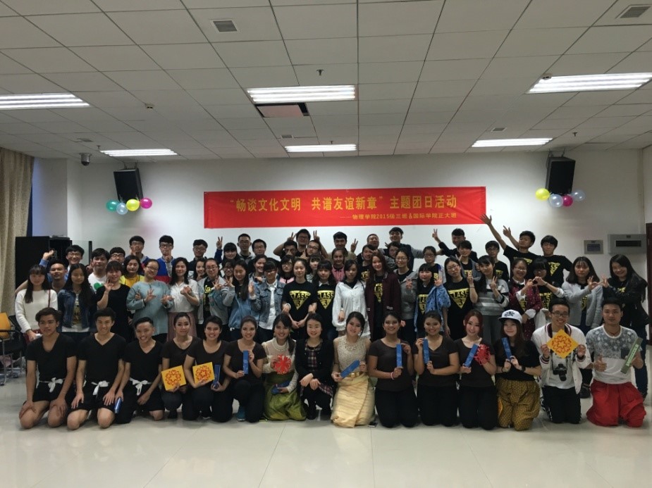 2016年3月21日下午16:30,永利3044noc泰国正大班和永利3044noc物理科学与技术公司2015级物理师范3班在紫云楼317会议室联合举办了“畅谈文化文明·共谱友谊新篇”的主题活动。永利3044noc学工办负责人李林泽、泰国正大班班主任李丹、物理科学与技术公司团委书记贺颖、辅导员王彪以及中泰两国64名同学参加了此次主题活动。