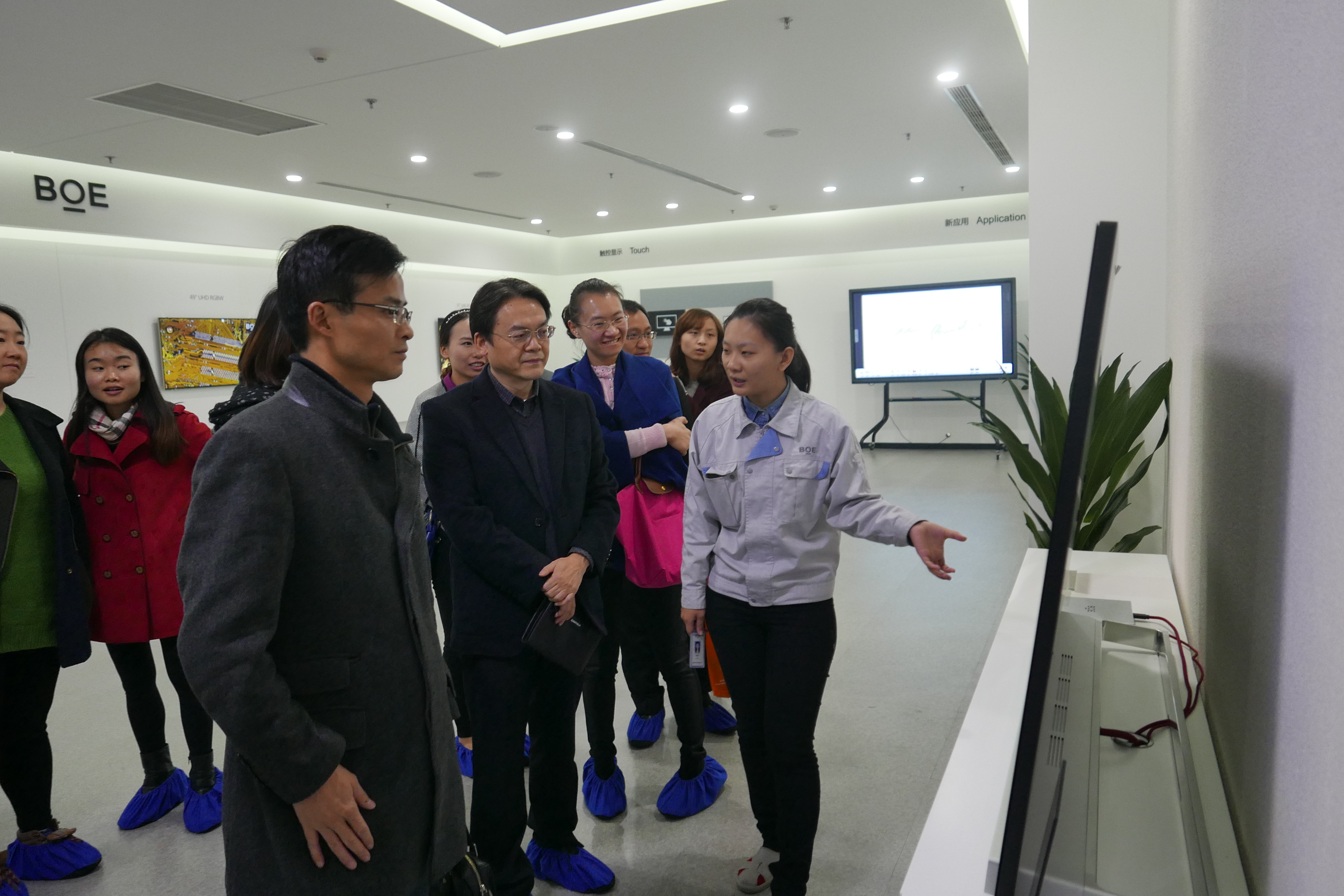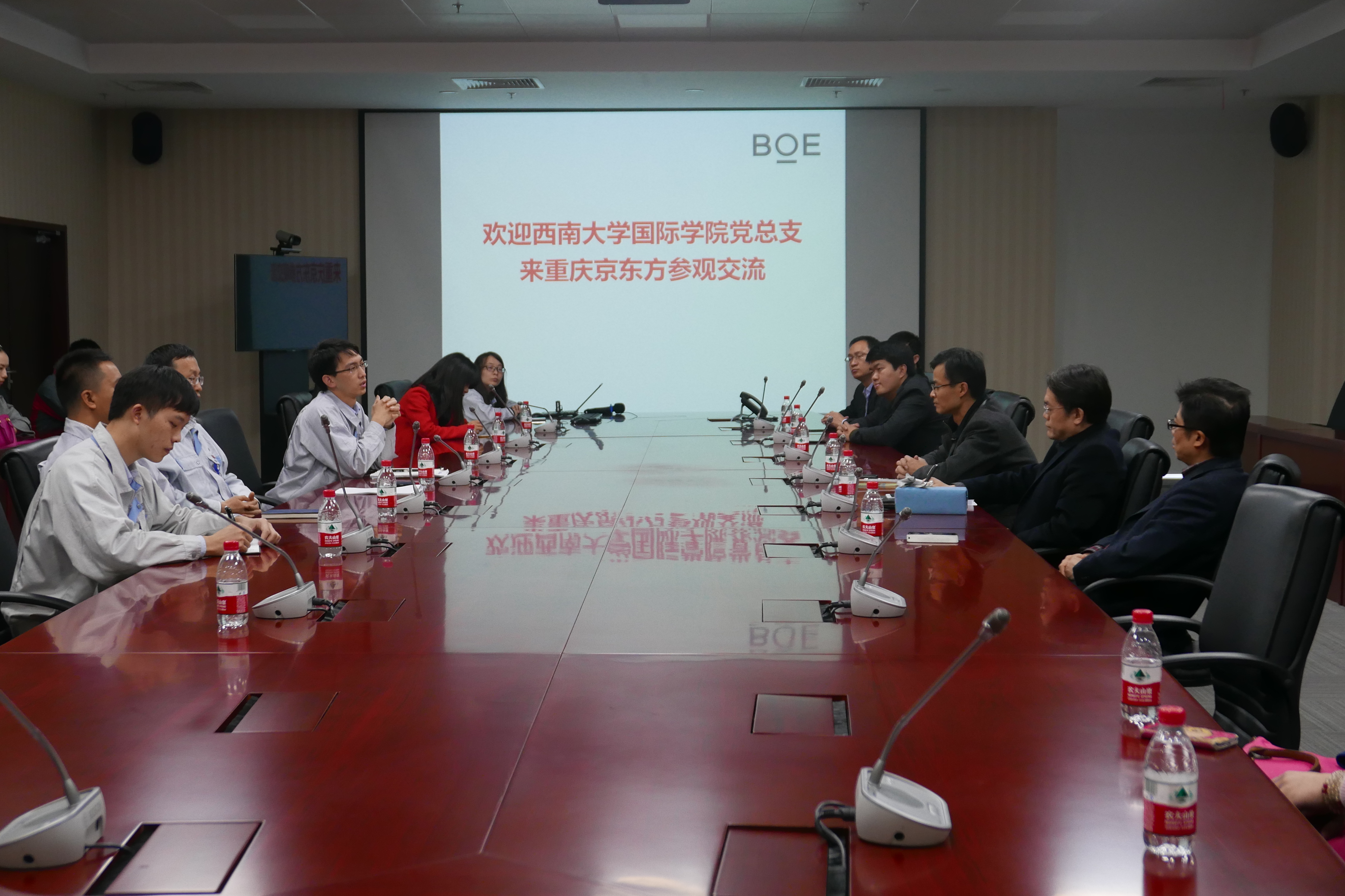 2015年11月27日下午,永利3044noc教工党支部全体党员来到位于重庆市水土高新技术产业园的重庆京东方光电科技有限公司(以下简称重庆京东方)参观,与公司党群工作部开展党建座谈,并就公司外籍员工及其家属的汉语培训和文化体验等合作事宜进行交流。