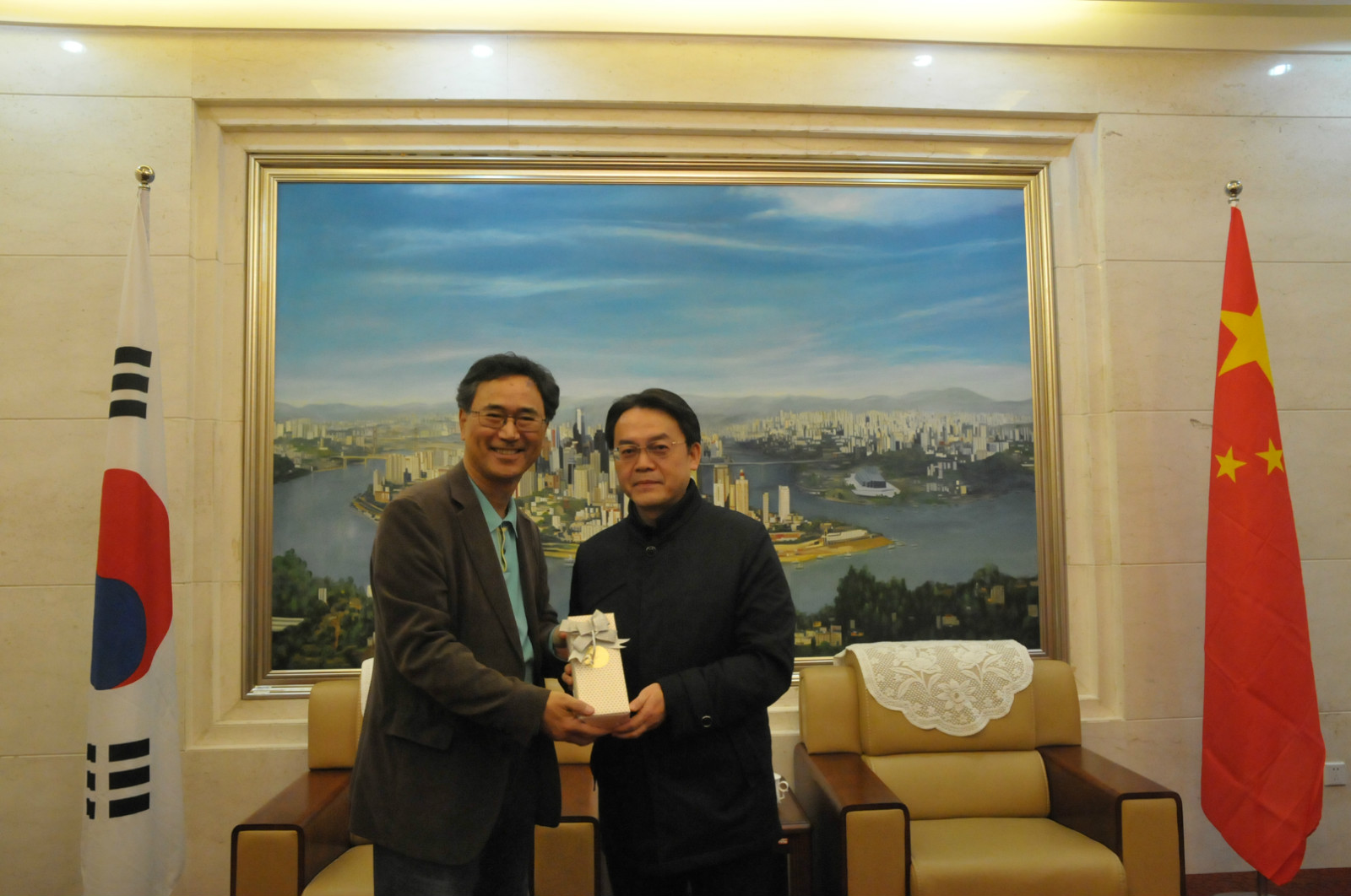 11月15日下午4点,韩国蔚山大学梁舜龙副董事长一行4人访问公司,党总支书记兼副经理刘猛热情接待了客人。