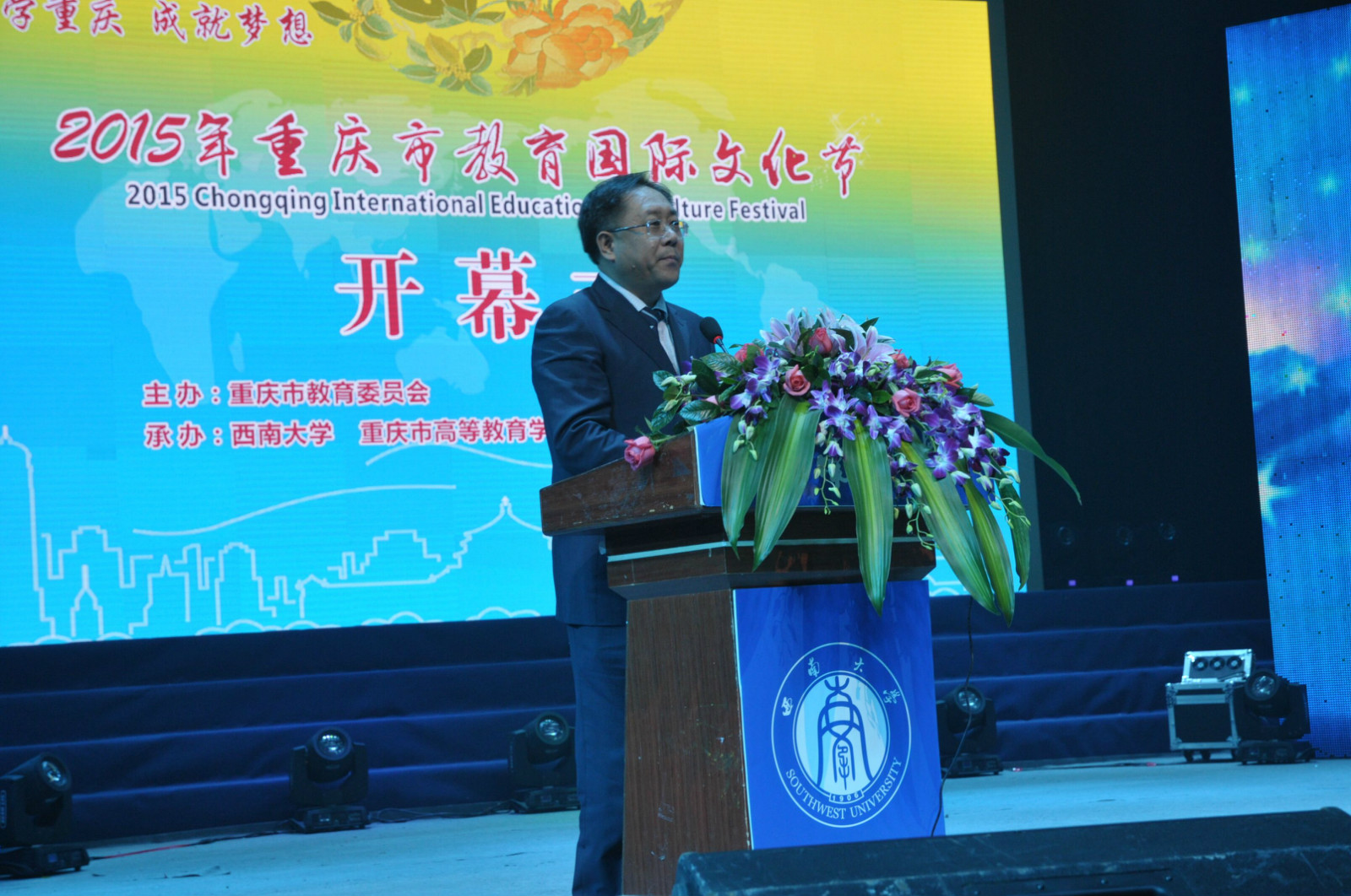 市教委周旭主任在会上讲话,介绍了重庆市来华职工工作的发展情况,希望教育国际文化节能办成重庆品牌,打造成宣传重庆的窗口,展示重庆的平台,推荐重庆的名片,成为重庆高等教育的文化盛宴,为重庆教育对外开放,为建设内陆开放高地多做贡献。