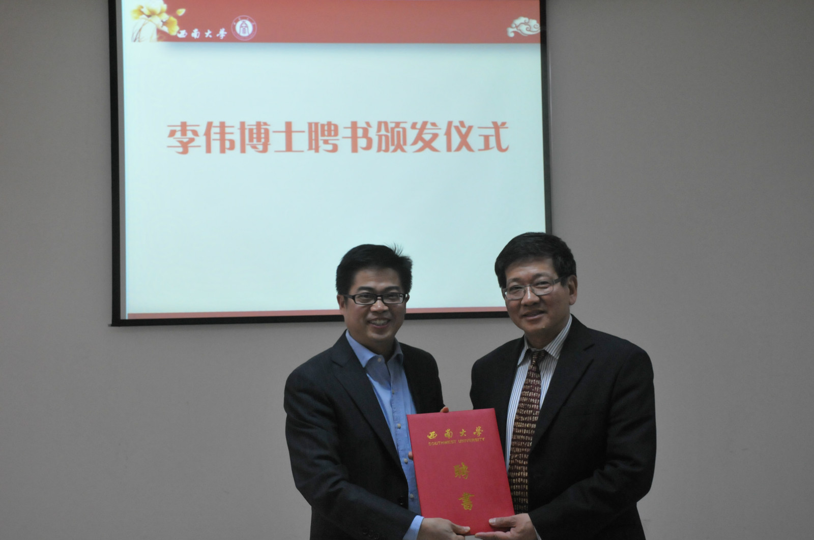 永利3044noc经理张发钧主持讲座活动。他首先代表永利3044noc欢迎李博士的到来,然后详细介绍了李伟博士在海外孔子公司建设及北美汉语教学方面的突出贡献。随后,张发钧经理代表公司为李伟博士颁发“永利3044noc汉语国际教育硕士专业学位研究生导师”聘书。李伟博士欣然接受,成为公司MTCSOL研究生海外导师,并应允每年为公司培养若干名MTCSOL研究生。张发钧经理与李伟博士同时表示,将以此为契机,进一步加强永利3044noc与埃德蒙顿孔子公司的深度合作,接下来会在互派师生、学术交流等多方面展开磋商。