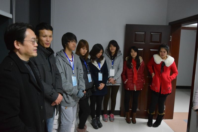 2014年12月11日晚,公司党总支书记兼副经理刘猛、学工办主任陈雨曦、班主任李丹在图书馆章雷副馆长的陪同下,来到中心图书馆看望慰问在此实习的泰国正大管理公司"1+1+2"商务汉语项目班的同学们。