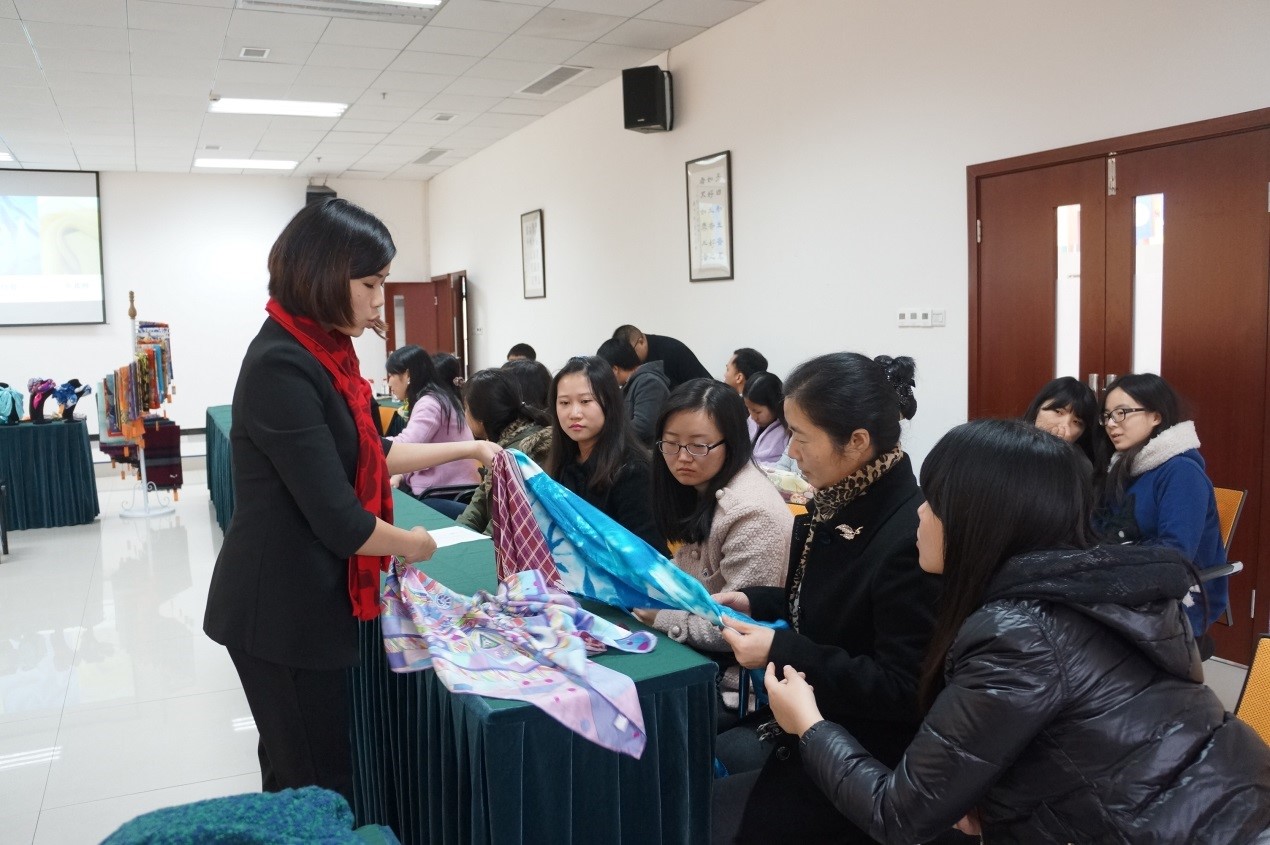 12月5日下午,以“丝行国际,情系西大”为主题的丝巾搭配交流会在永利3044noc317会议室举行。出席本次讲座的有国际公司党总支书记兼副经理刘猛,公司办公室主任邹育艳,员工工作办公室陈雨曦。公司教职工、员工代表均参加本次讲座。