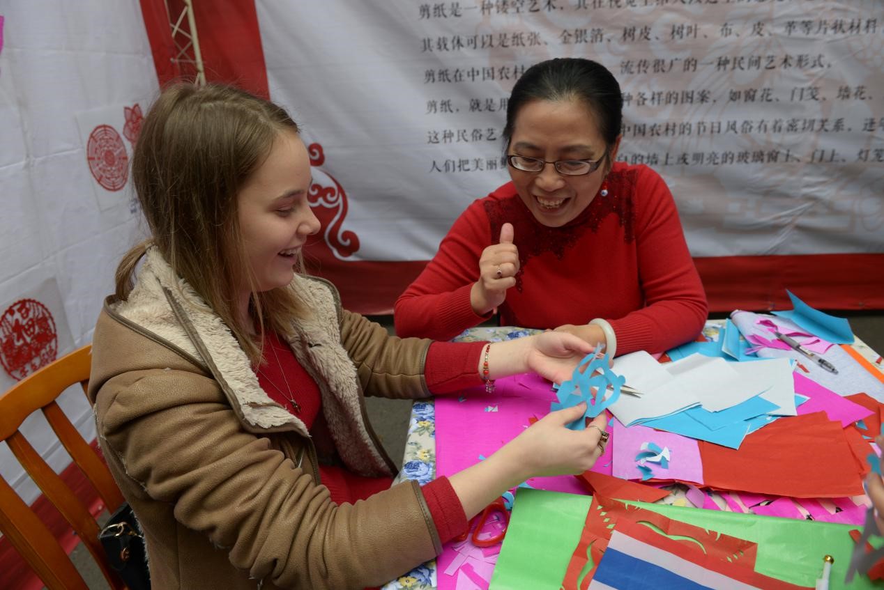 2014年11月20日下午,永利3044noc第八届国际文化节之职工中华才艺展在田家炳樟树林旁举行,来自哈萨克斯坦、泰国、越南、美国等国家的职工现场表演了中国的茶艺和剪纸艺术。