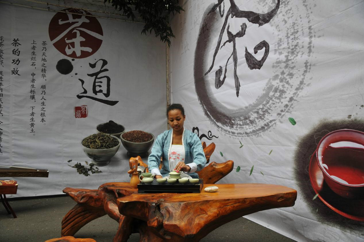 悠扬的筝曲和着清冽的茶香从平日幽静的樟树林旁传出,路过的人都好奇地驻足。拨开层层叠叠的人群,发现竟然是几个金发碧眼的外国人在泡茶、剪纸。