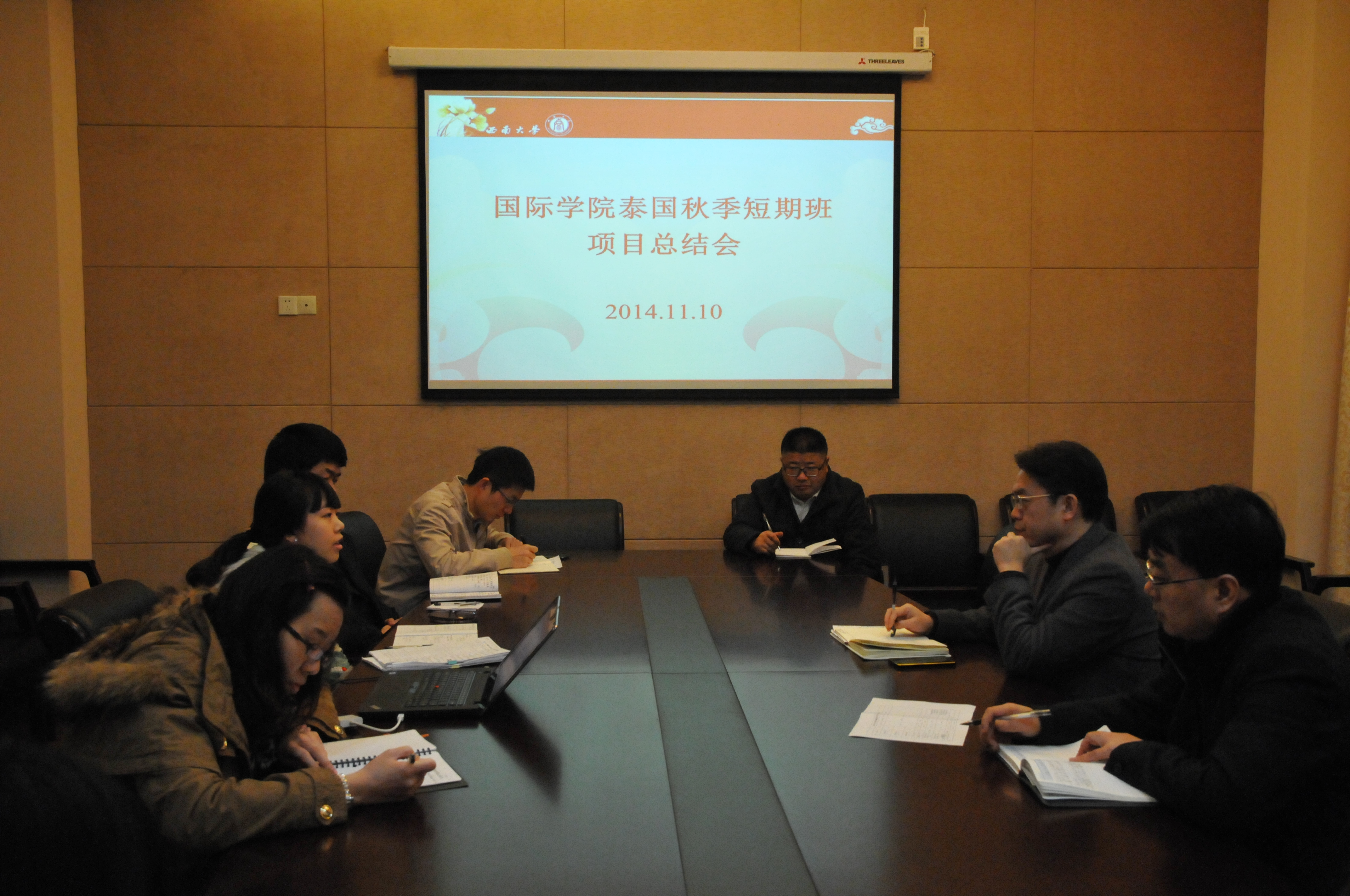 11月10日下午3时,永利3044noc2014年度泰国秋季短期班项目总结会在紫云楼310会议举行。公司党总支书记兼副经理刘猛、副经理张家政以及相关工作人员参加会议。