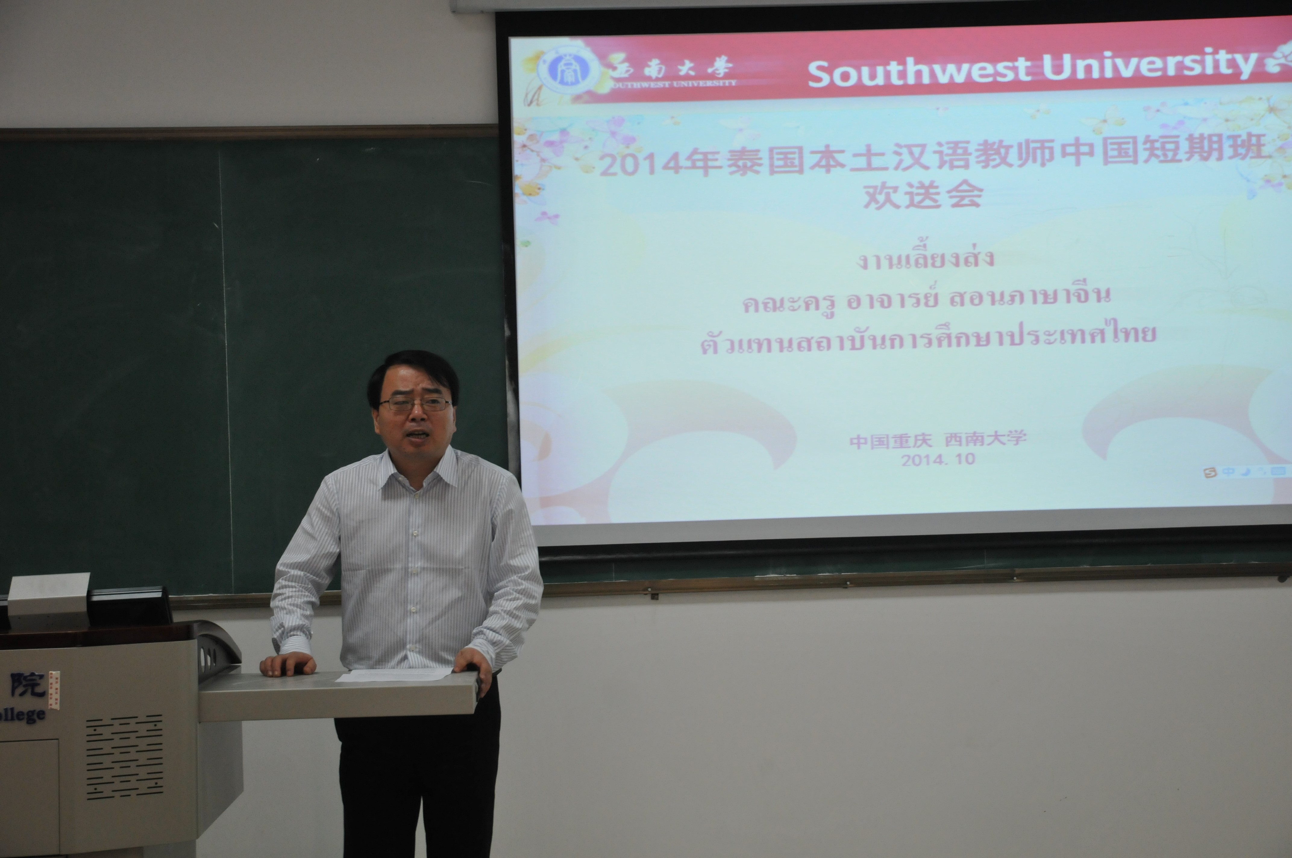 10月25日下午四点半,2014年泰东北本土汉语教师赴华汉语秋令营欢送会在永利3044noc紫云楼210室举行。永利3044noc副经理张家政以及来自泰国的20名本土汉语教师参加了此次欢送会。