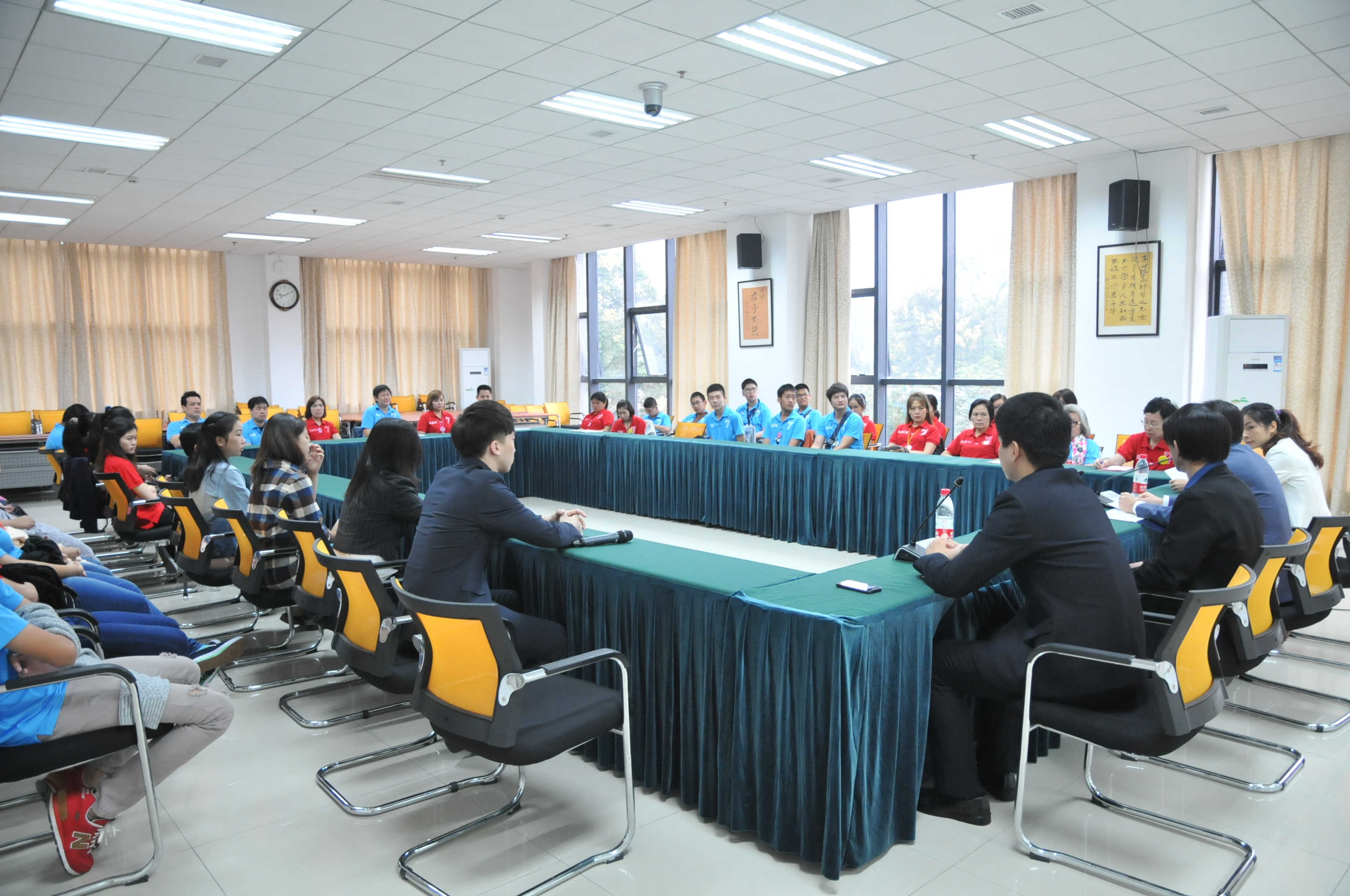 10月15日上午,2014年泰国华裔员工赴华汉语秋令营开营典礼在紫云楼317会议室举行,永利3044noc总支书记兼副经理刘猛,教师代表和40名泰国学员参加典礼。