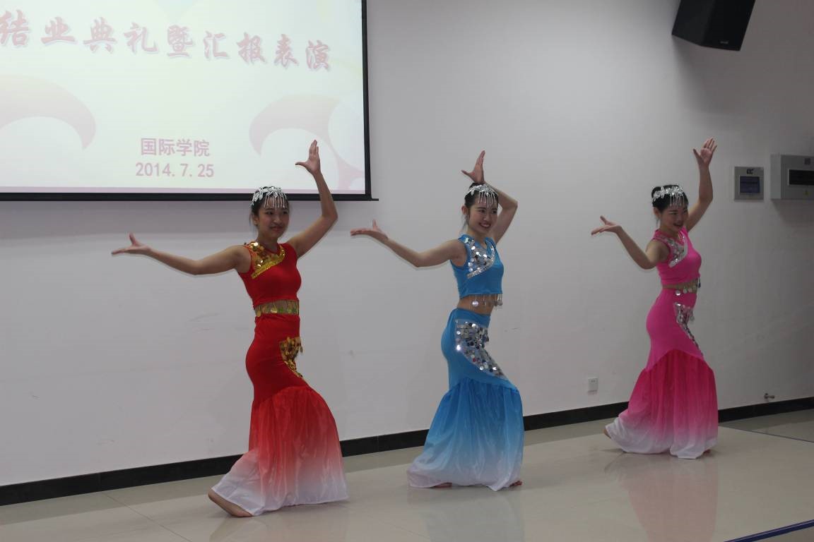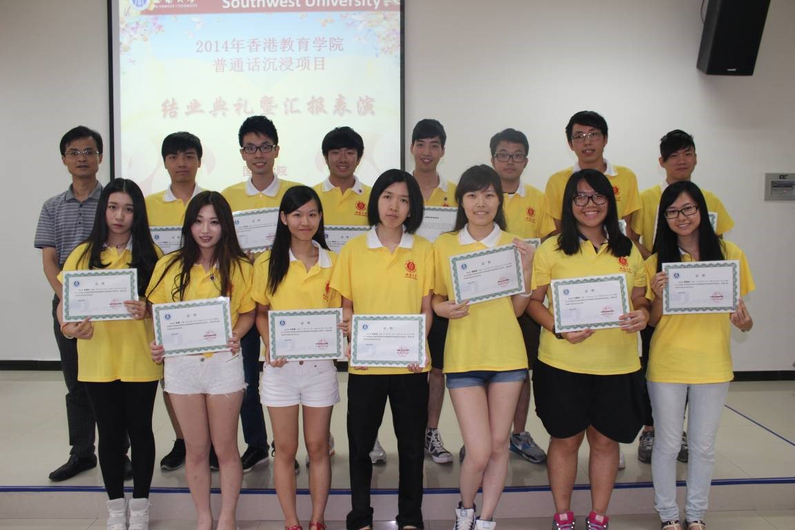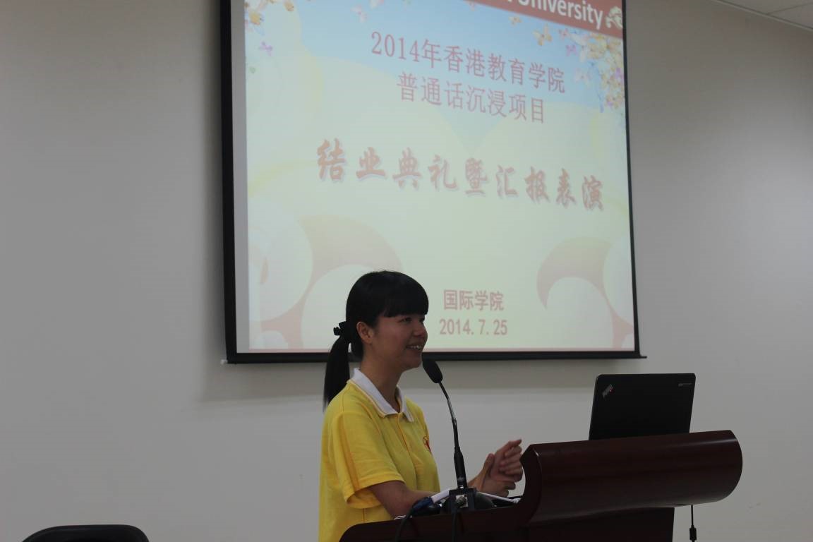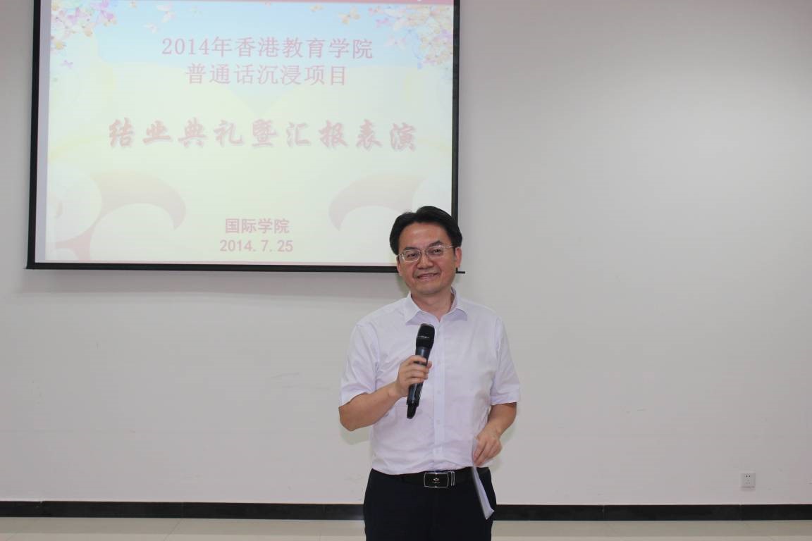 2014年7月25日下午4:30香港教育公司中国语文教育荣誉学士普通话沉浸项目结业典礼暨汇报演出在紫云楼317教室隆重举行,国际公司党总支书记兼副经理刘猛、项目相关负责老师及任课教师出席该典礼。