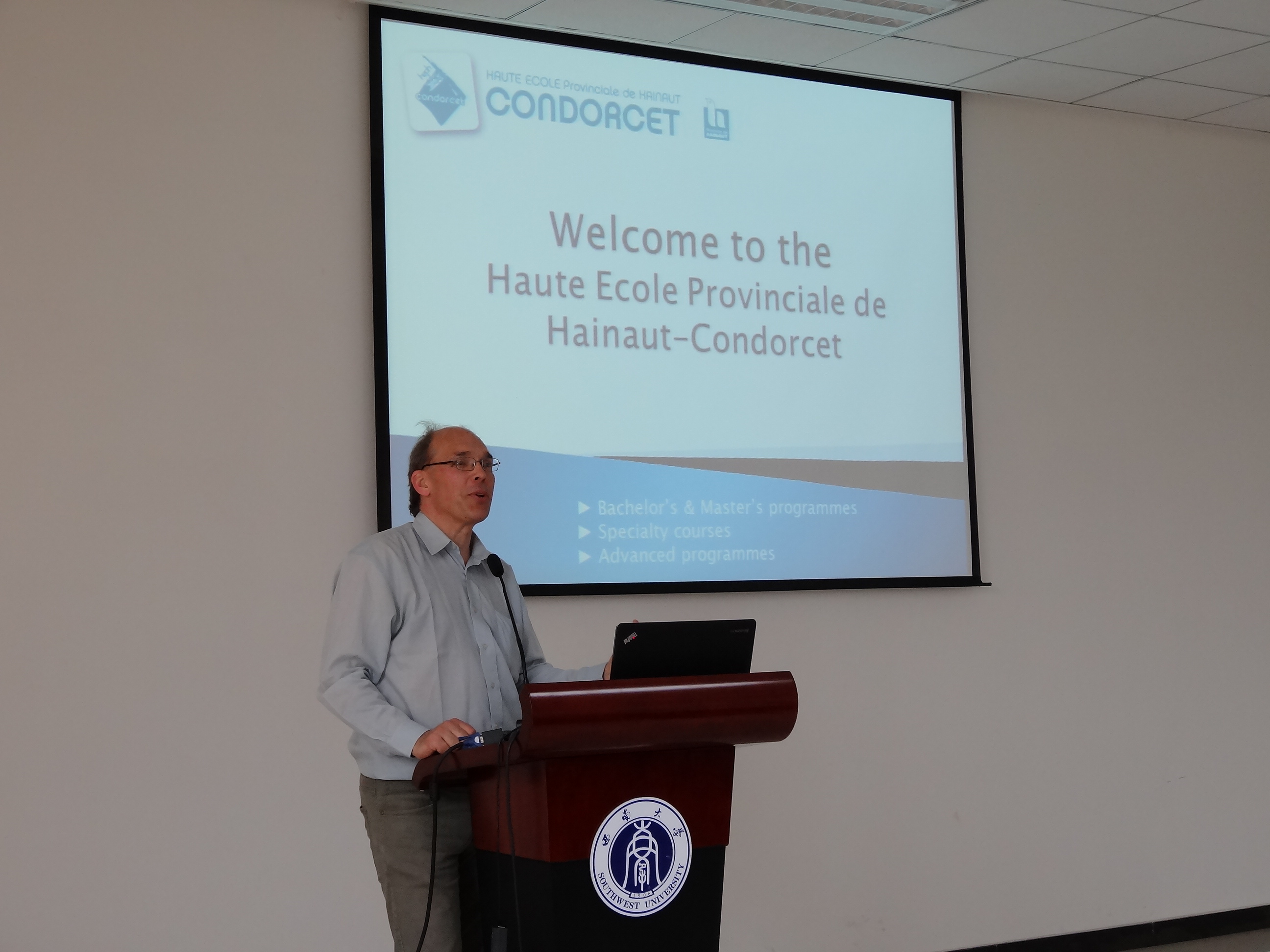 刘猛书记代表公司致欢迎辞。他简要介绍了重庆的概况以及永利3044noc的办学情况,向比利时来宾表达了祝福与期待,希望两校今后的交流合作更上一层楼。比利时孔多赛大学学术团代表Serneels先生向永利3044noc的师生介绍了该校的办学情况,希望今后双方能进行更多的学术研讨与交流合作。