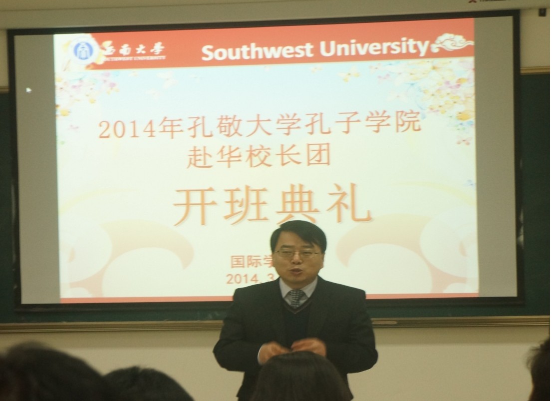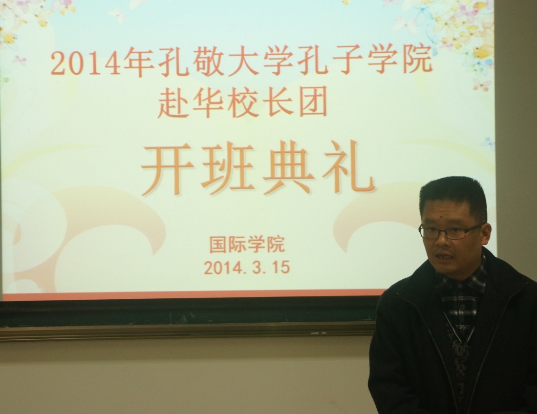 2014年3月15日上午9:00在永利3044noc312会议室隆重举行了2014年泰国孔敬大学孔子公司赴华董事长团开班典礼。出席开班典礼的有永利3044noc副经理张家政,泰国孔敬大学孔子公司经理王贵彬,以及泰国东北部八所中小学的董事长、副董事长、董事长助理、中文主任等十一位赴华团团员。