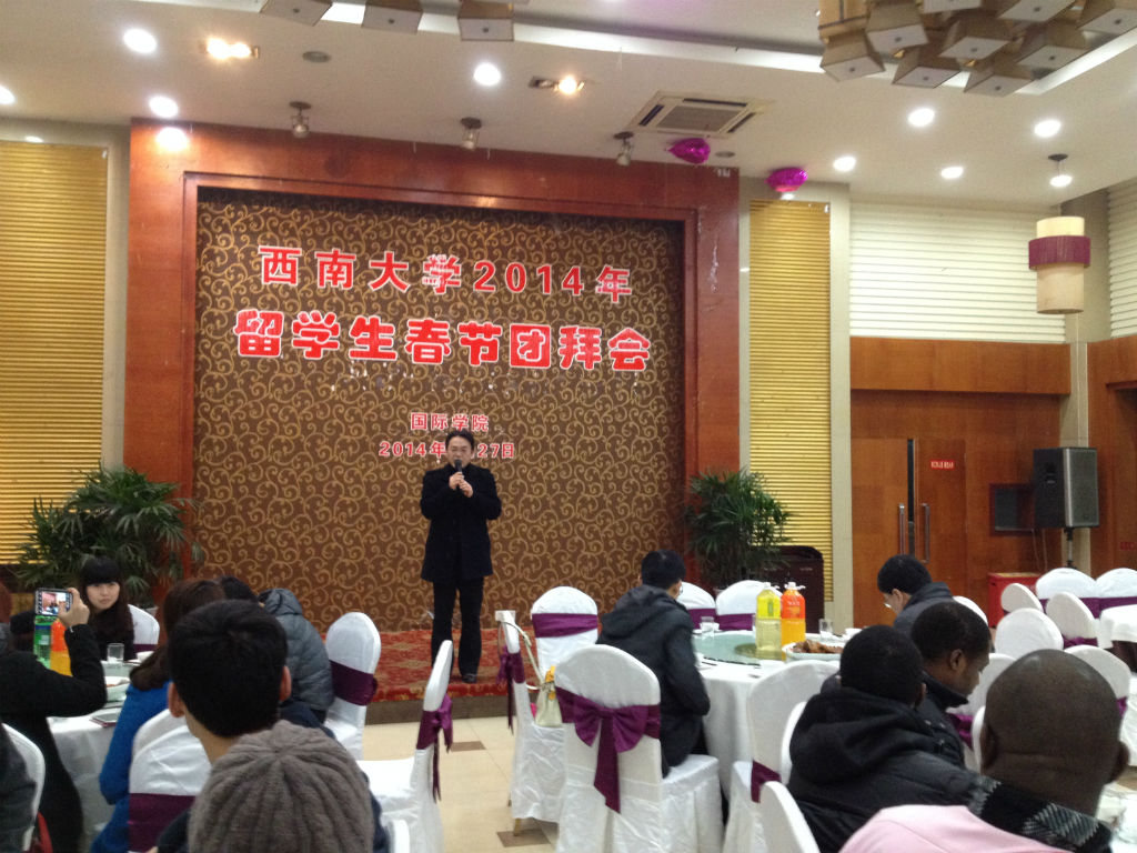 刘猛书记首先致辞,介绍了春节的传统习俗,回顾了2013年公司来华职工教育的发展及所取得的成绩,并鼓励大家要发扬马的精神,一马当先,马不停蹄,马上拥有一切。张家政副经理随后也发表了新年祝福,祝大家马上有爱,马上有福,马到功成。来自韩国的朴秀海同学代表所有留校职工发言,讲述了自己第一次在中国过春节的感受并为大家送上了新年祝福。刘猛书记和张家政副经理还以红包的方式向各位职工发放了春节慰问金。团拜会上,大家举杯同贺,其乐融融,仿佛家人般相互问候,相互祝福,2014年职工春节团拜会在一片欢声笑语中顺利结束。