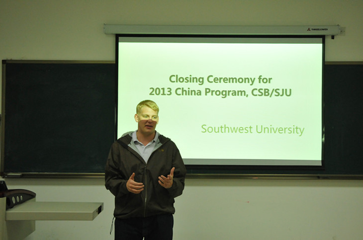 张家政副经理对大家顺利完成学业表示祝贺,并送上了殷切的祝福。领队教师Marsnik教授、教师代表胡洋坤老师、员工代表也相继发言,表达了在西大学习的经历和感受。