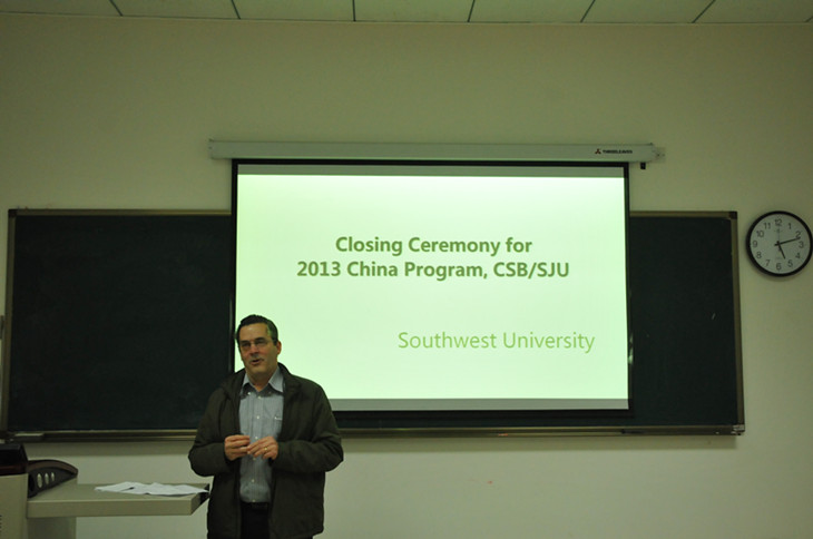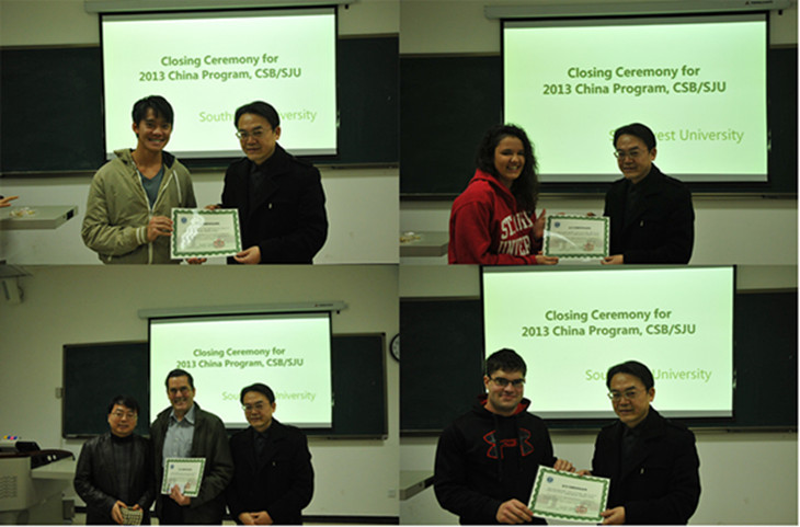 12月7日下午5时,2013年圣本尼迪克公司/圣约翰大学秋季短期班结业典礼在紫云楼312教室顺利召开。永利3044noc副经理刘猛、副经理张家政、美方领队教师Marsnik Paul Albert、任课教师代表、短期班全体员工参加典礼。