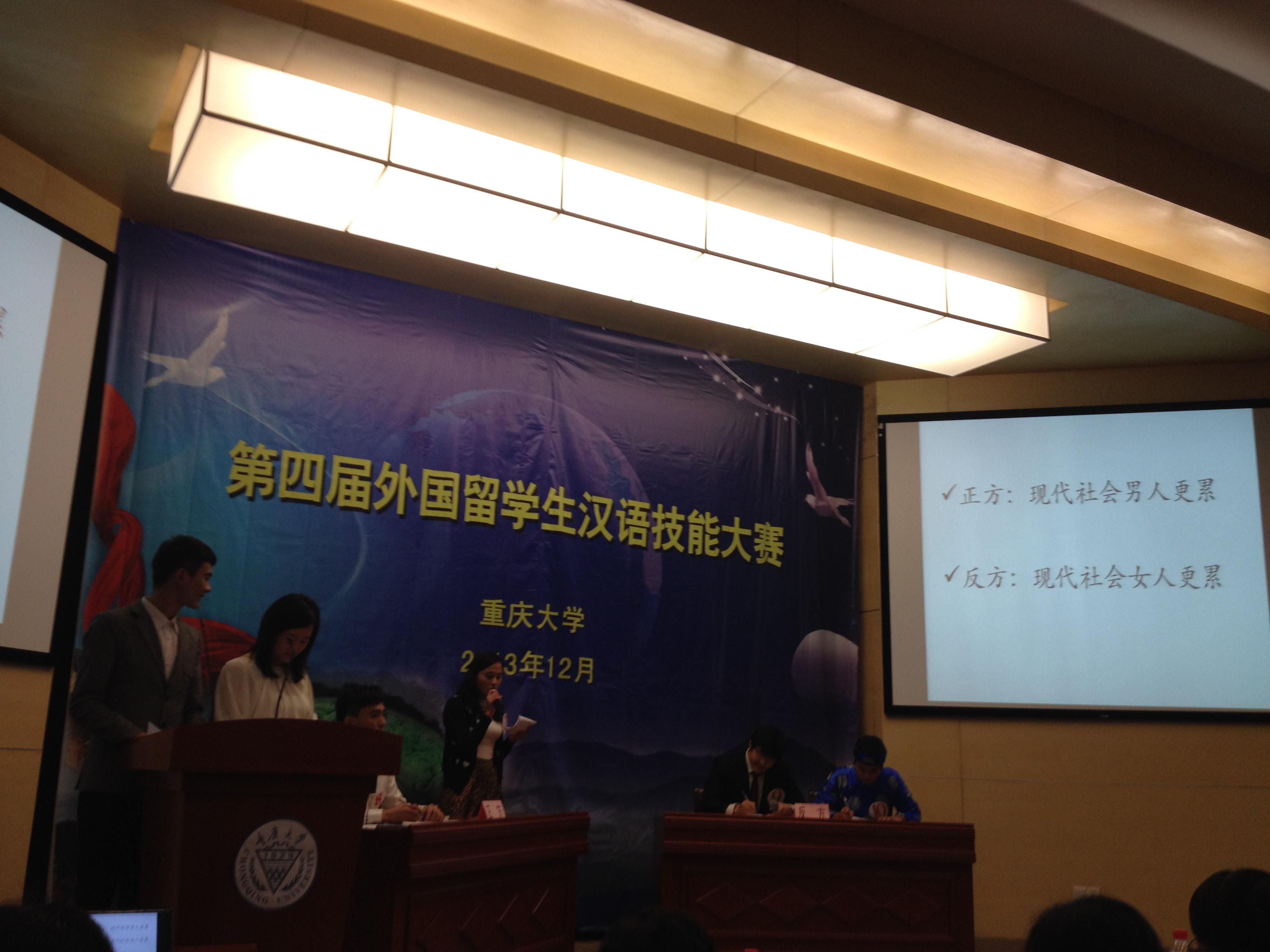 2013年12月5日下午2:30重庆大学永利3044noc举办了第四届外国职工汉语技能大赛,重庆市八所高校均派出职工积极参与此次比赛。通过紧张的预赛角逐,公司哈萨克斯坦职工帕丽扎同学以及越南职工黄英书同学进入了决赛。最后帕丽扎同学以流利的口语及丰富的中国文化知识获得评委的一致认可,摘得中级组第一名;黄英书同学在高级组辩论比赛环节中表现优异,获得第二名的好成绩。