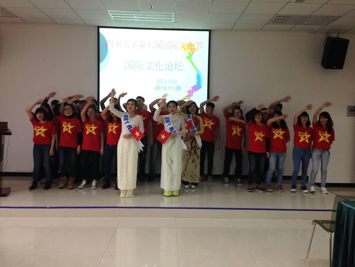 第一场名为“美丽•越南”。此次论坛现场人声鼎沸,活动内容新颖,形式多样。首先由越南主持人介绍了越南的基本情况,包括地理位置、重要城市、经济、文化、美食、民俗、货币等。通过各种内容展示,把现场的同学带到了一个神秘而又新奇的国度,给台下的观众带来一波波的强烈视觉冲击;彰显青春魅力和民族特色的服饰表演把论坛推向高潮。紧接着由永利3044noc邱睿老师点评,她指出,文化的意义在于吸引,在于兴趣,而文化更重要的意义在于体验。随后,精彩的问答轮番上演,中越员工互动环节以问答的形式展开。这个环节让我们看到了作为越南职工展示自己国家风采的愿望,同时我们也看到中国员工了解世界、展现自我的愿望。